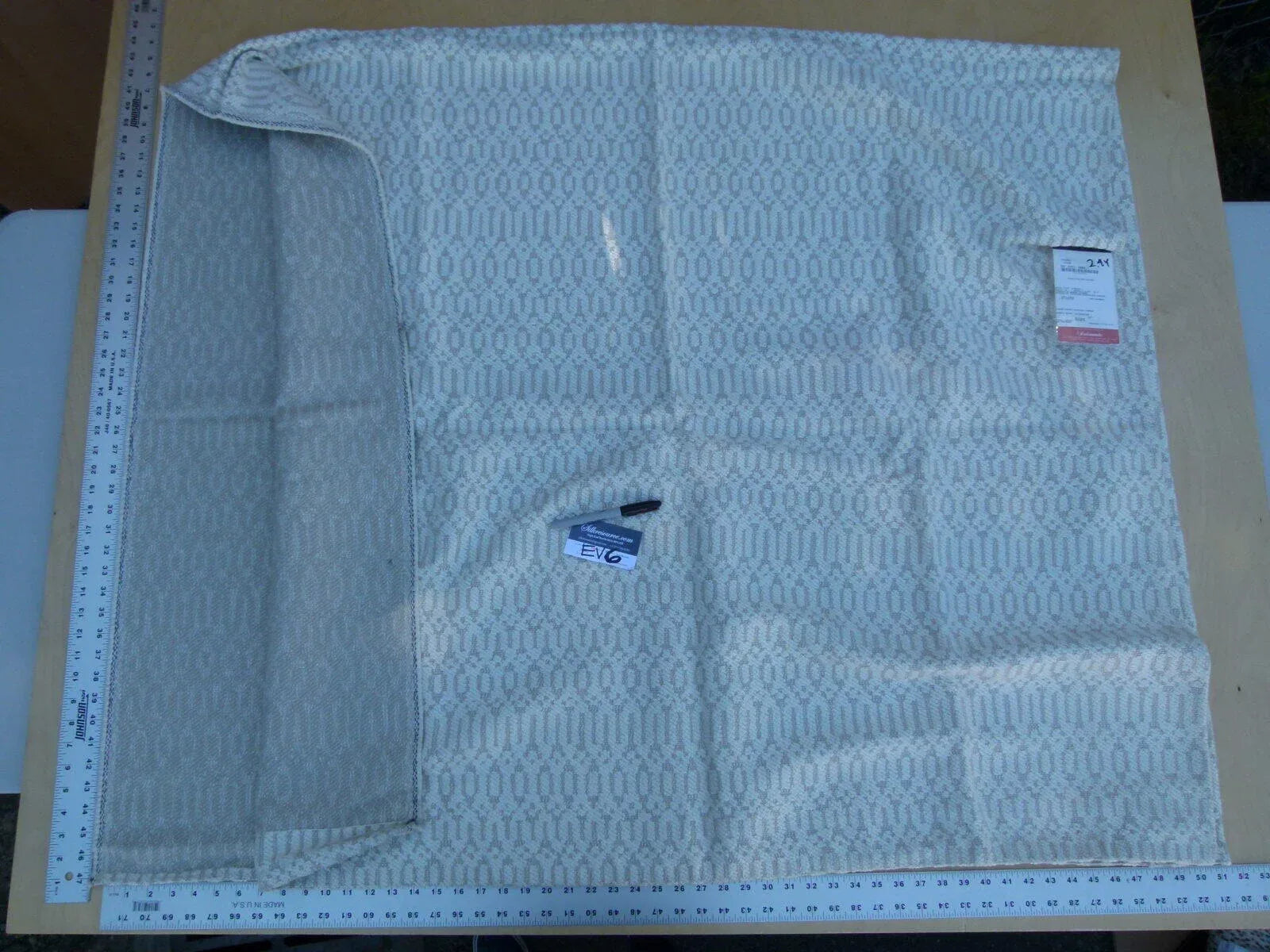 Most are about 26"x26" showroom squares. Pieces have size noted in title if a different size. Note some pieces are folded.