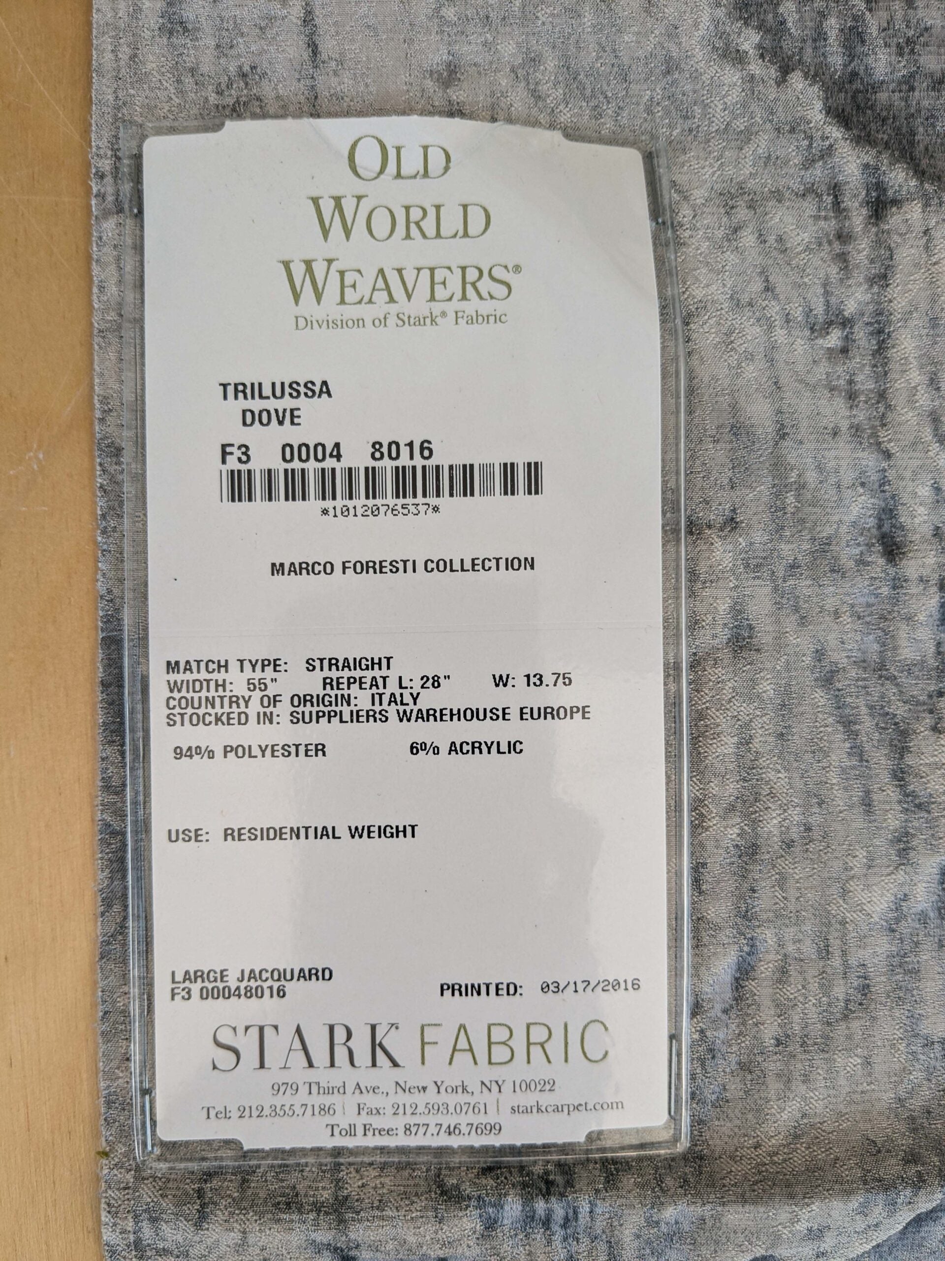 81 EV37 26" x 27" Old World Weavers Trilussa Dove Light Gray Abstract Large Jacquard