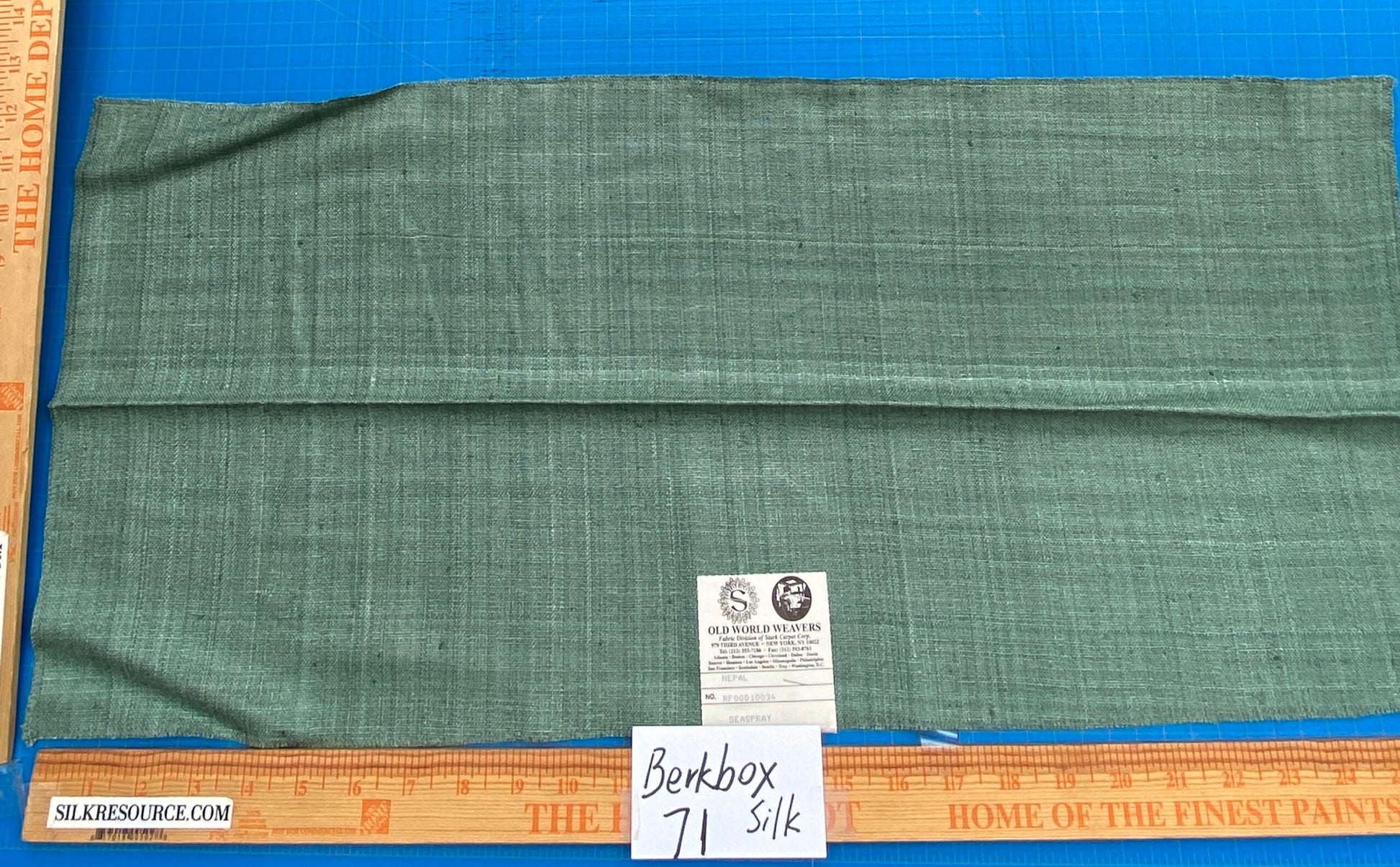 83 Berkbox71 Scalamandre Square Silk by Old World Weavers Nepal Seaspray Green Solid 12" x 25" MSRP USD 310/y