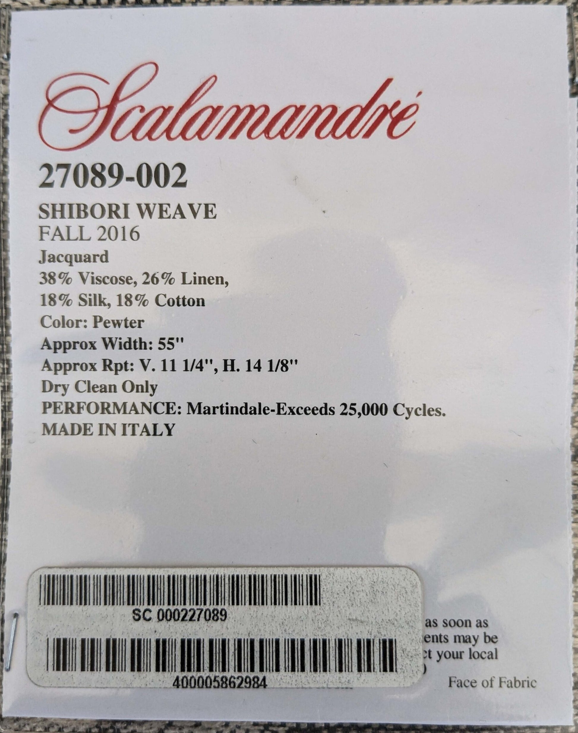 86 EV37 27" x 26" Scalamandre Shibori Weave Pewter Gray White Jacquard Abstract Texture MSRP USD 246/y