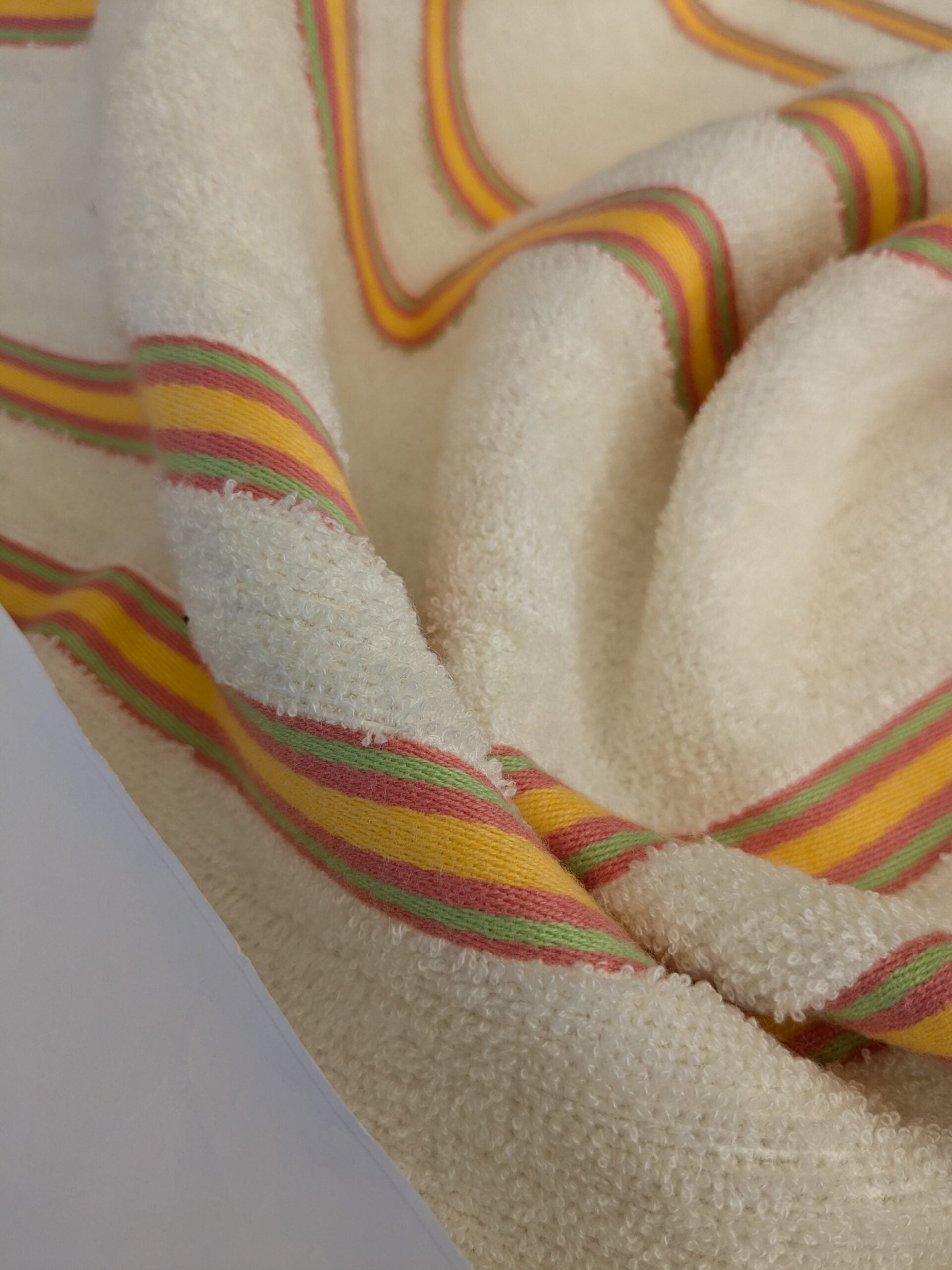 87 EV47 Square Scalamandre Old World Weavers Riviera Gelato Pink Green Yellow White Horizontal Stripe Outdoor