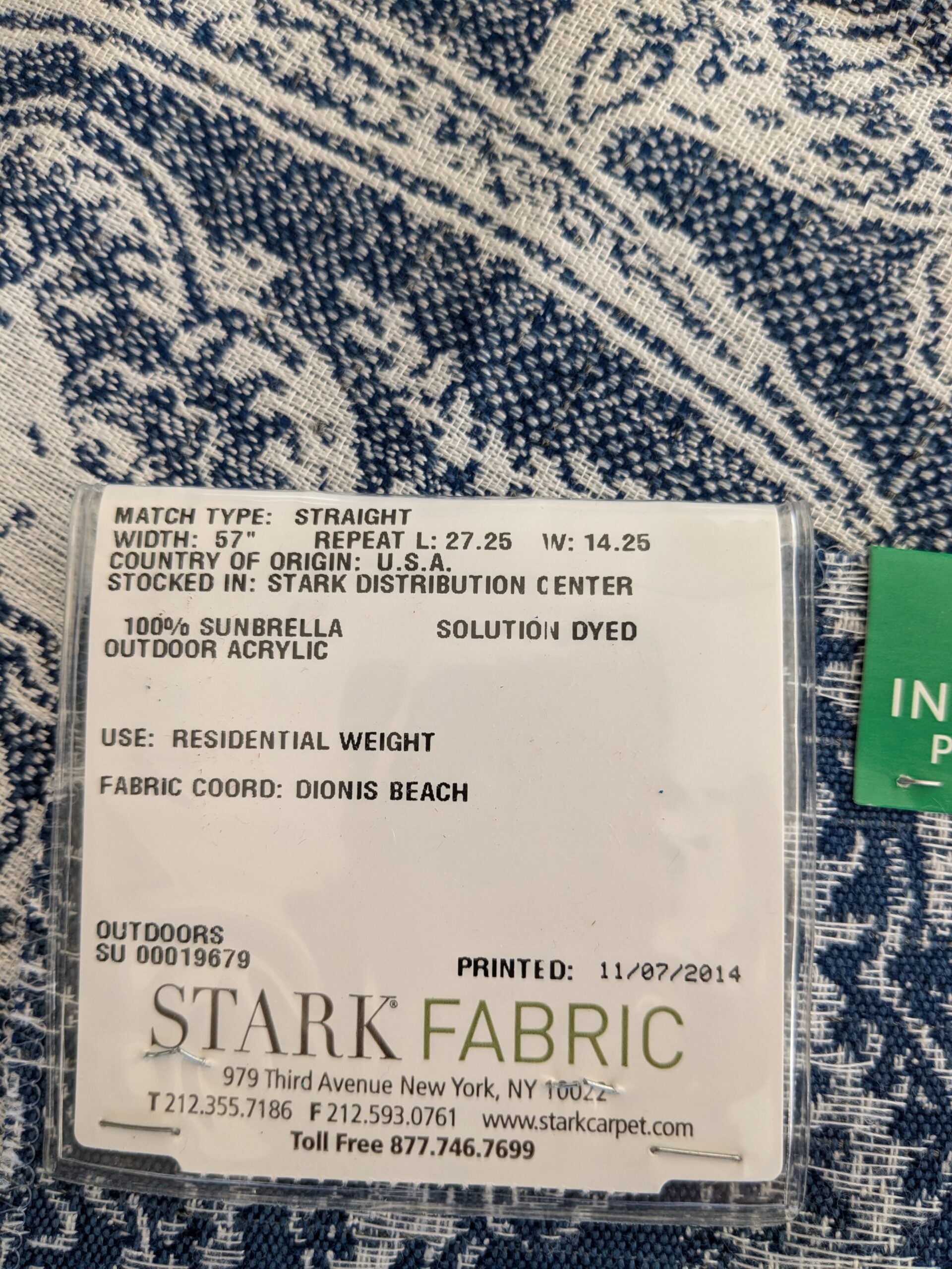 | Approx. repeat | Horizontal 14.25″/36.20 cm; vertical 27.25″/ 69.22 cm |
