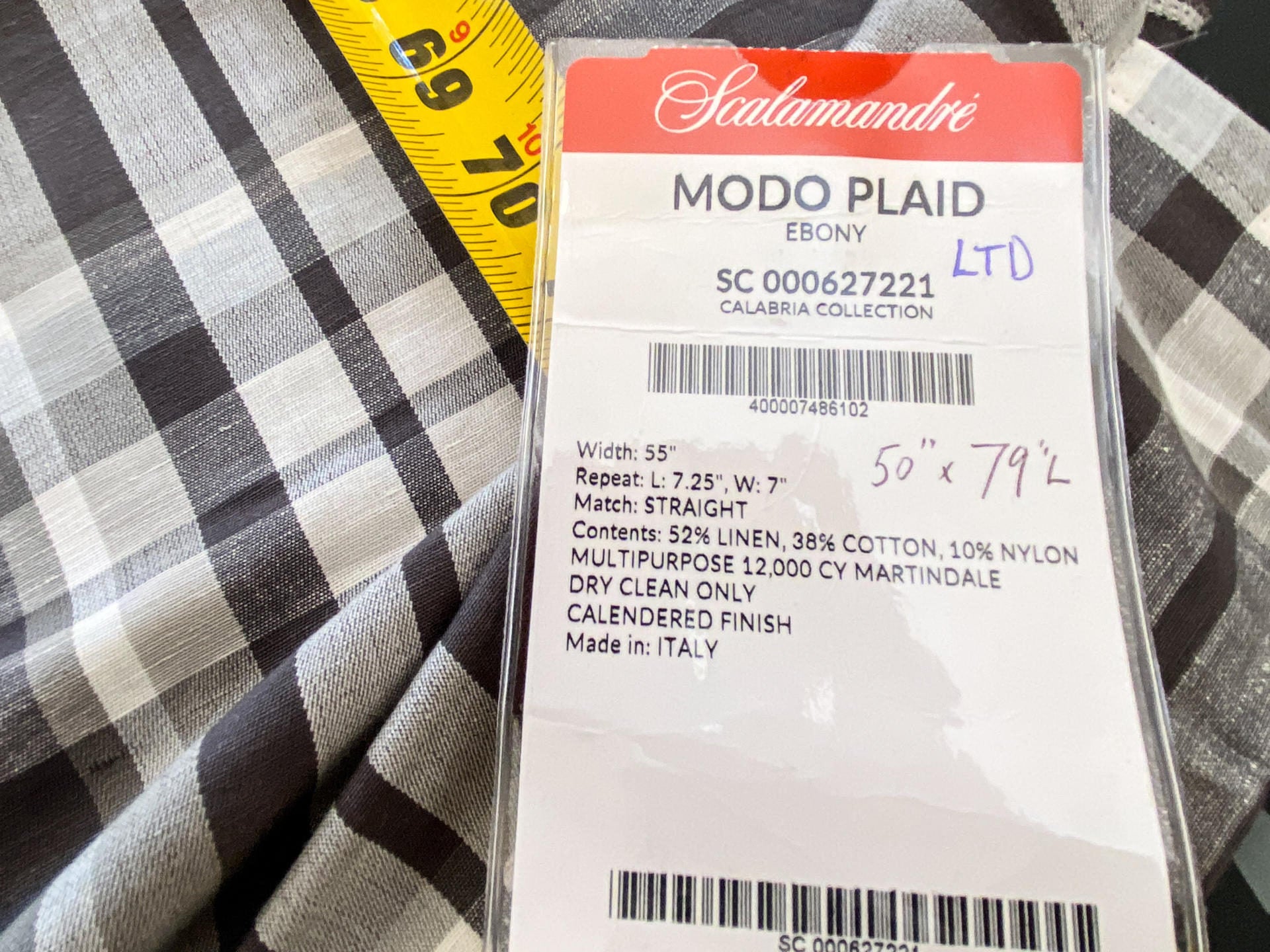 9 Berkbox64 Finished Drapery 2.4yard Scalamandre MODO PLAID EBONY Brown and White