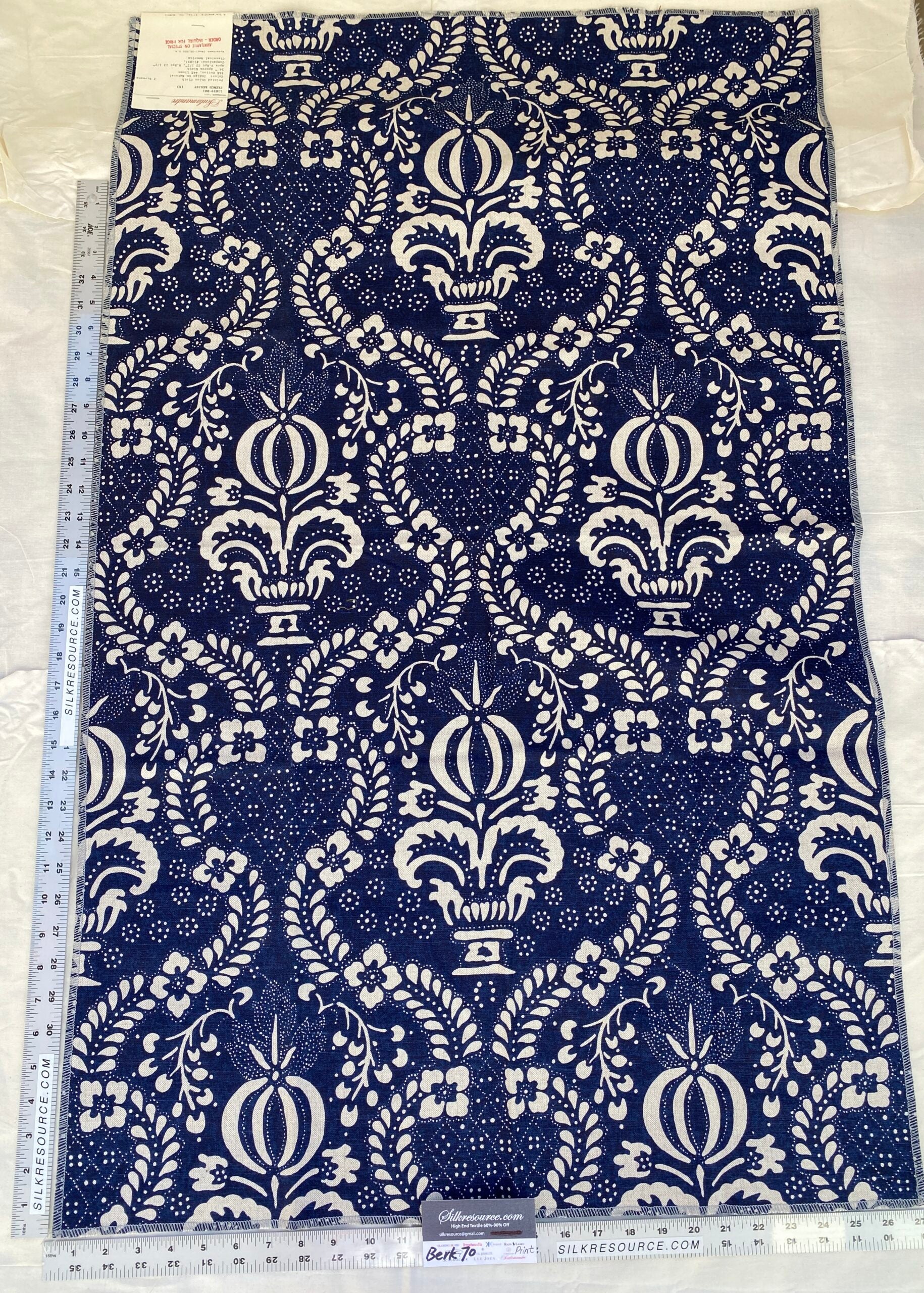 9 Berkbox70 Scalamandre French Resist Indigo On Natural Blue White Cotton Panel French Circa 1.2yard x 27 inches