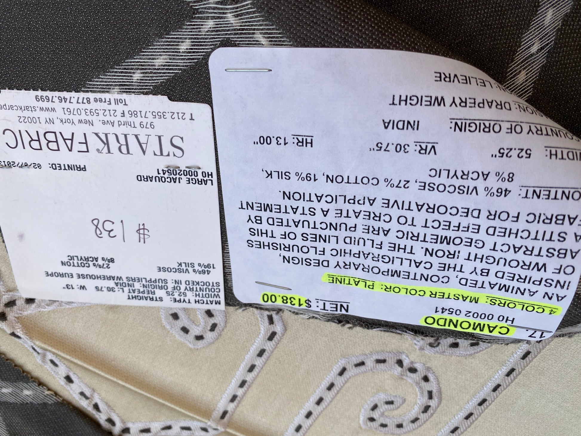 These designer exclusive fabric retails anywhere $300+/yard.