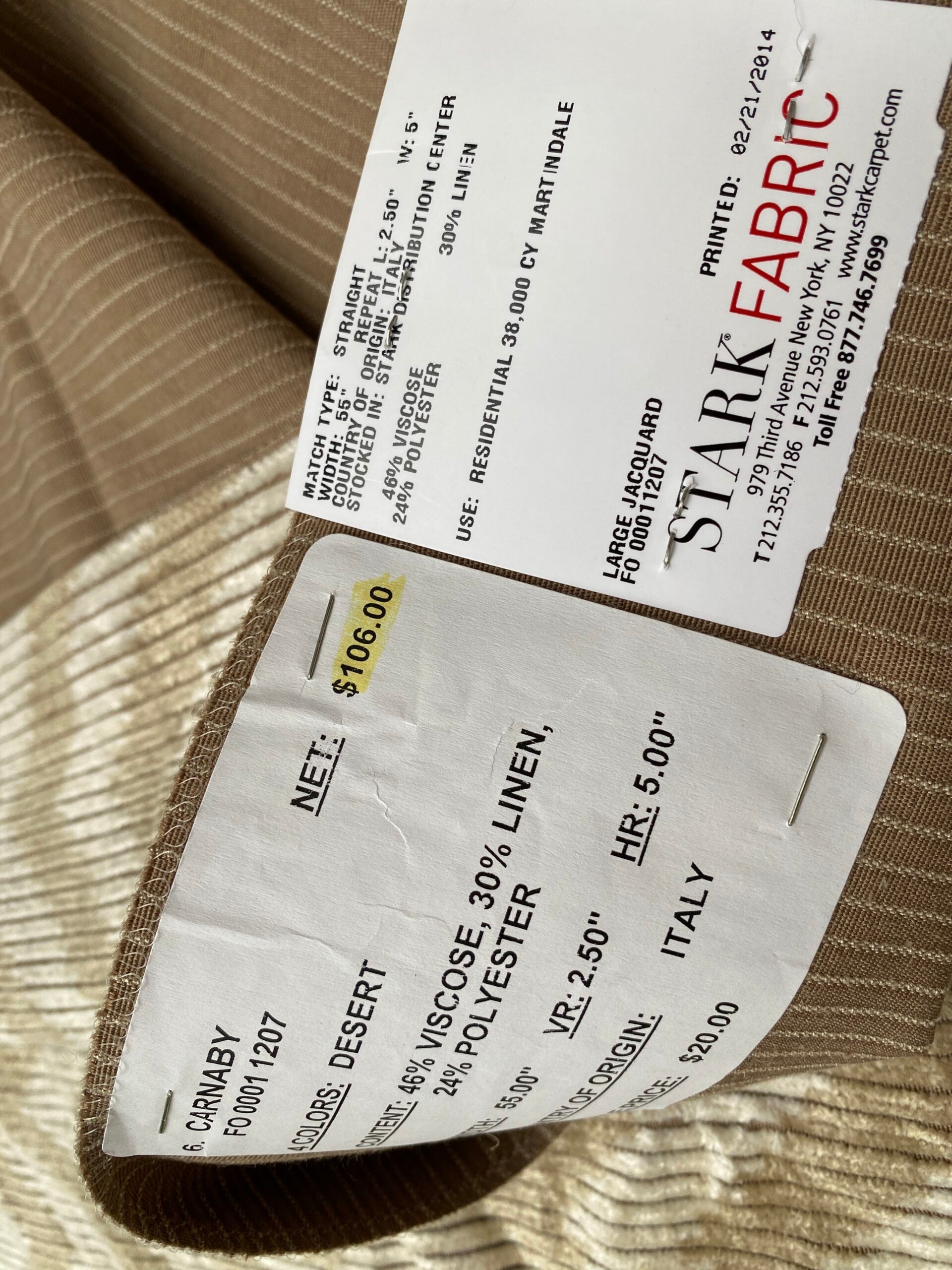 Fiber, repeat, width, weight, country of origin, WHOLESALE price/yard: