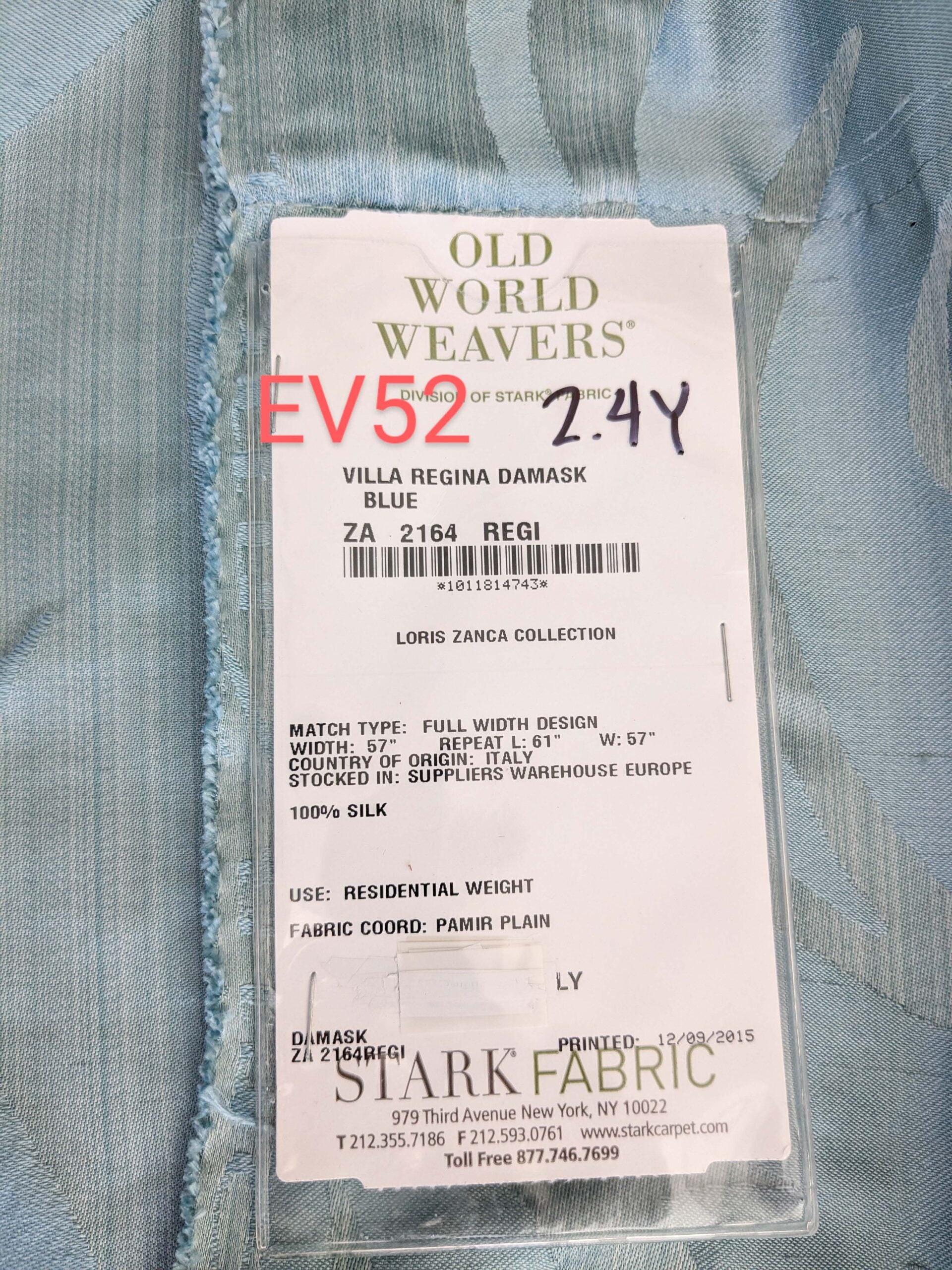 9 EV52 2.4y x 57"wide Scalamandre Old World Weavers Villa Regina Damask Blue 100% Silk Renaissance MSRP USD500+