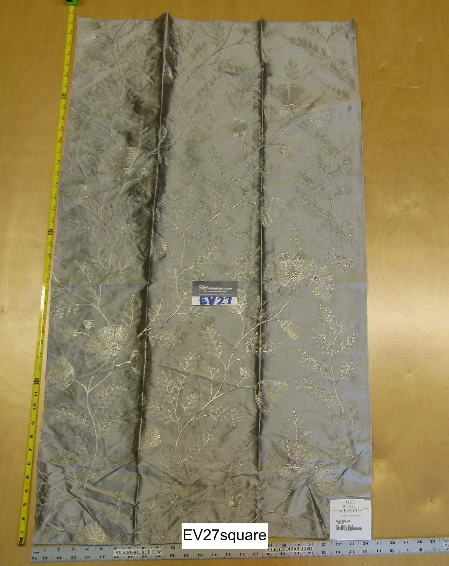 Scalamandre Old World Weavers Villa Taranto Silver Silk Embroidery Floral - Square 43" x 24"
