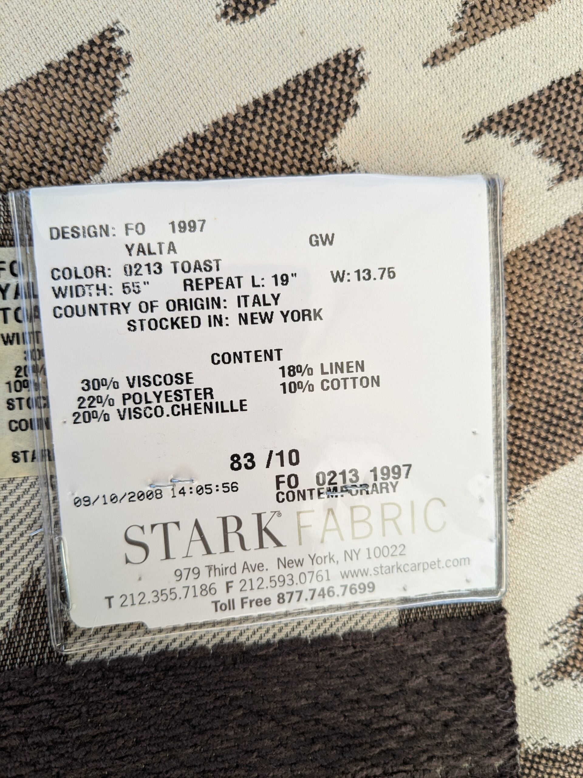 Fiber, repeat, width, weight, country of origin, WHOLESALE price/yard: