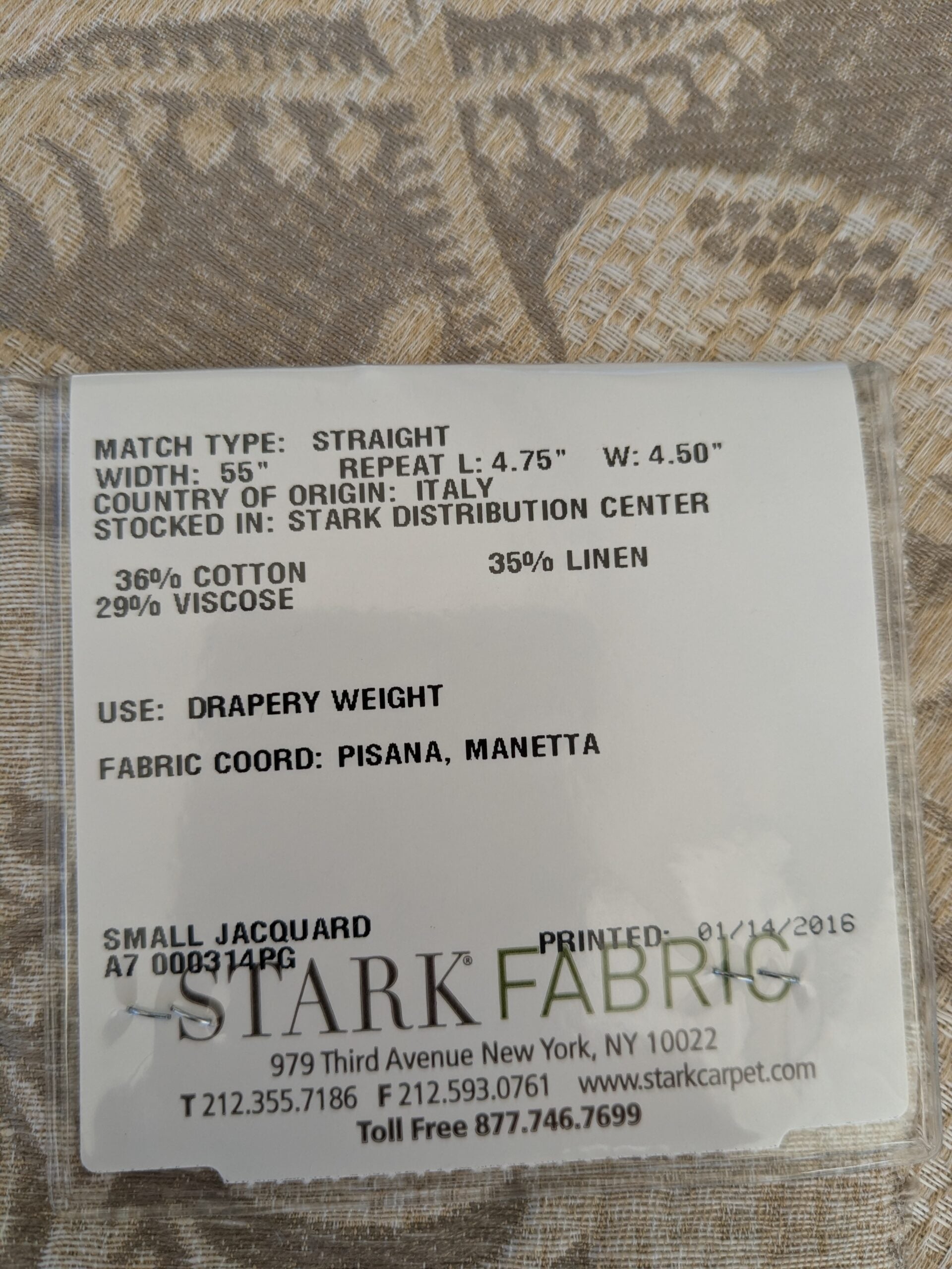 Fiber, repeat, width, weight, country of origin, WHOLESALE price/yard: