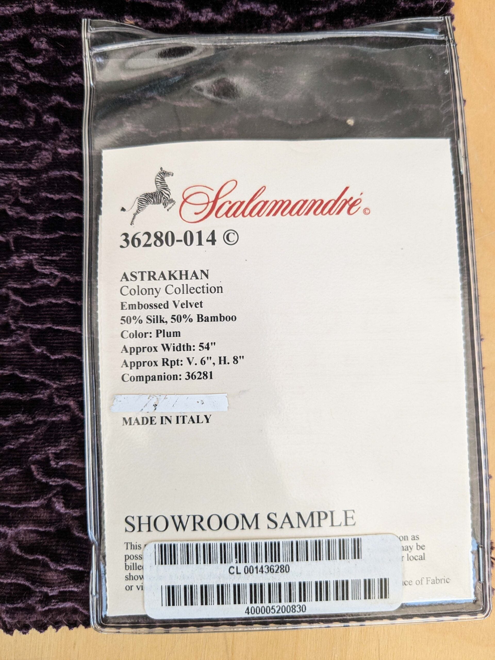 96 EV37 18" x 26" Scalamandre Astrakhan Plum Purple Embossed Velvet Silk Bamboo MSRP USD 858/y