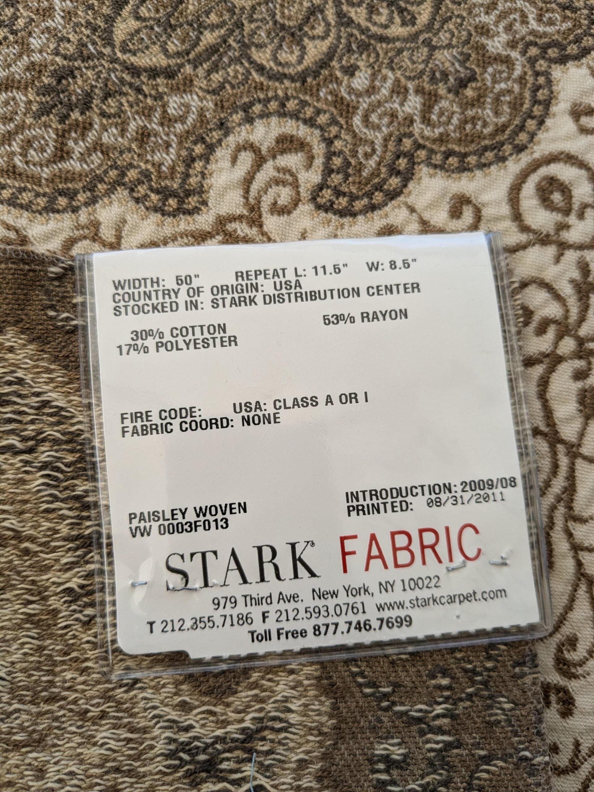 Fiber, repeat, width, weight, country of origin, WHOLESALE price/yard: