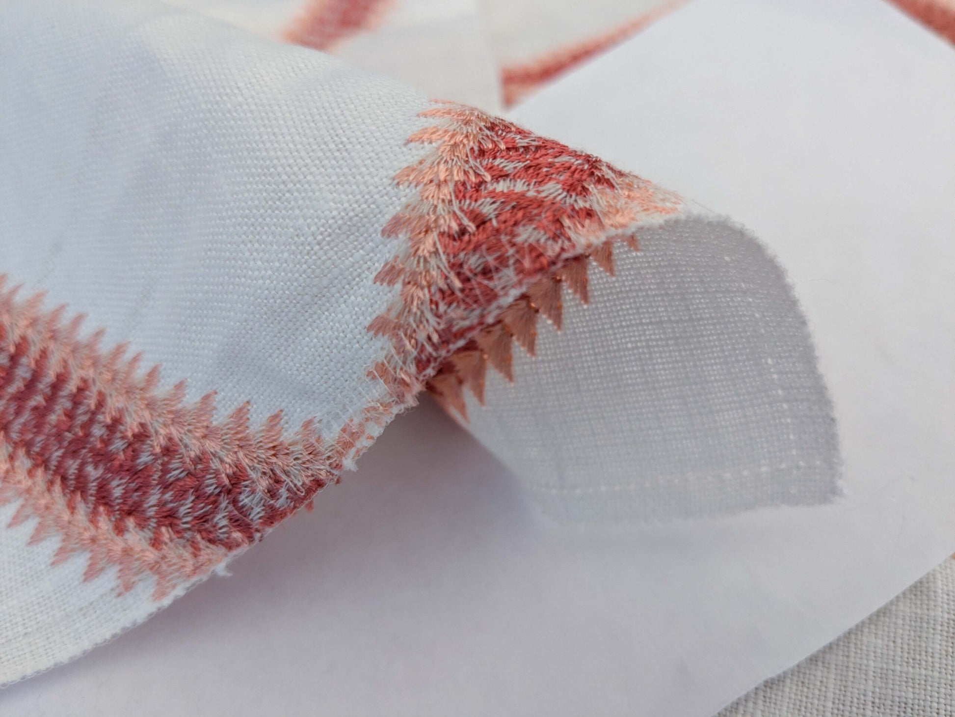 99 EV50 26" x 27" Square Scalamandre Rondure Embroidery Coral Orange White Diamond Ogee MSRP USD 492/y