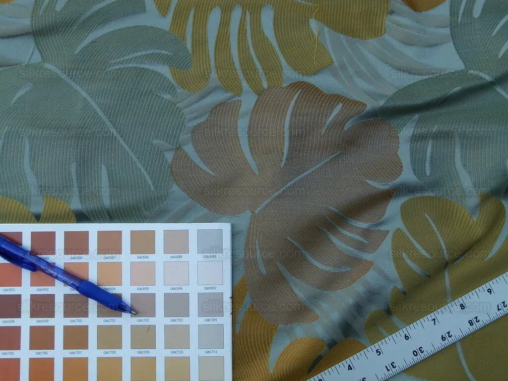 by yard Scalamandre Agostina Blue Foliage 100% Silk Lampas Monstera Leave MSRP USD 234/Y