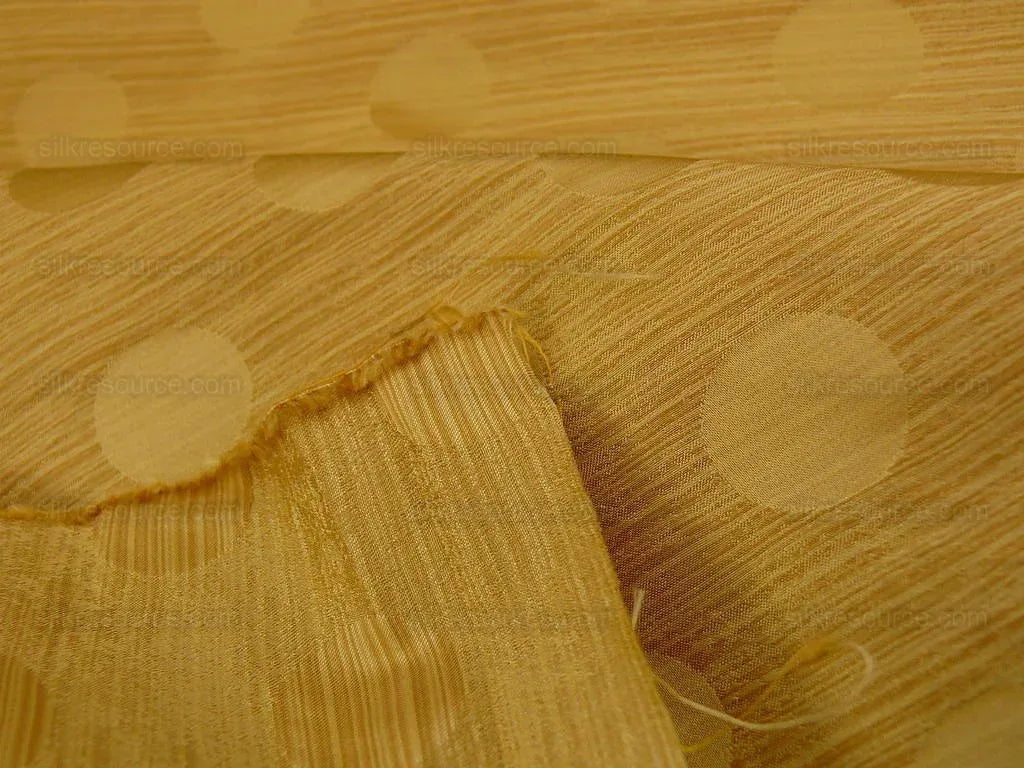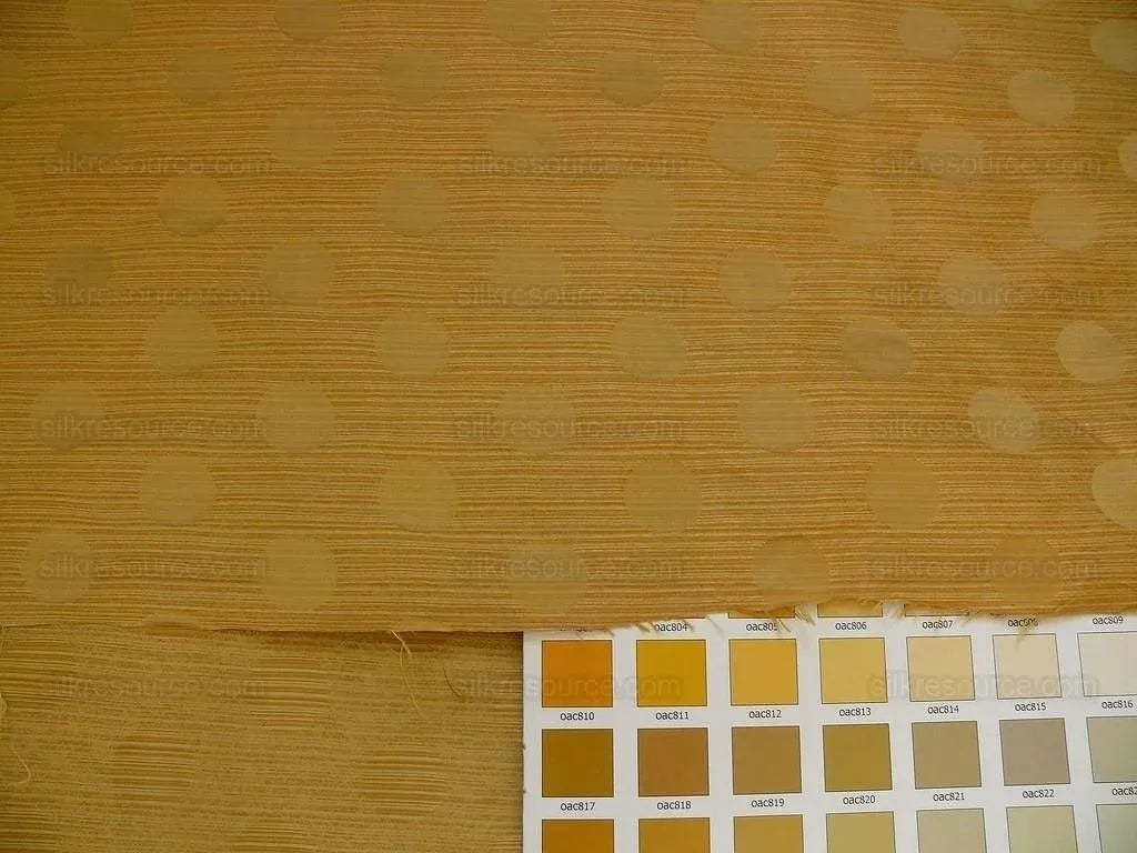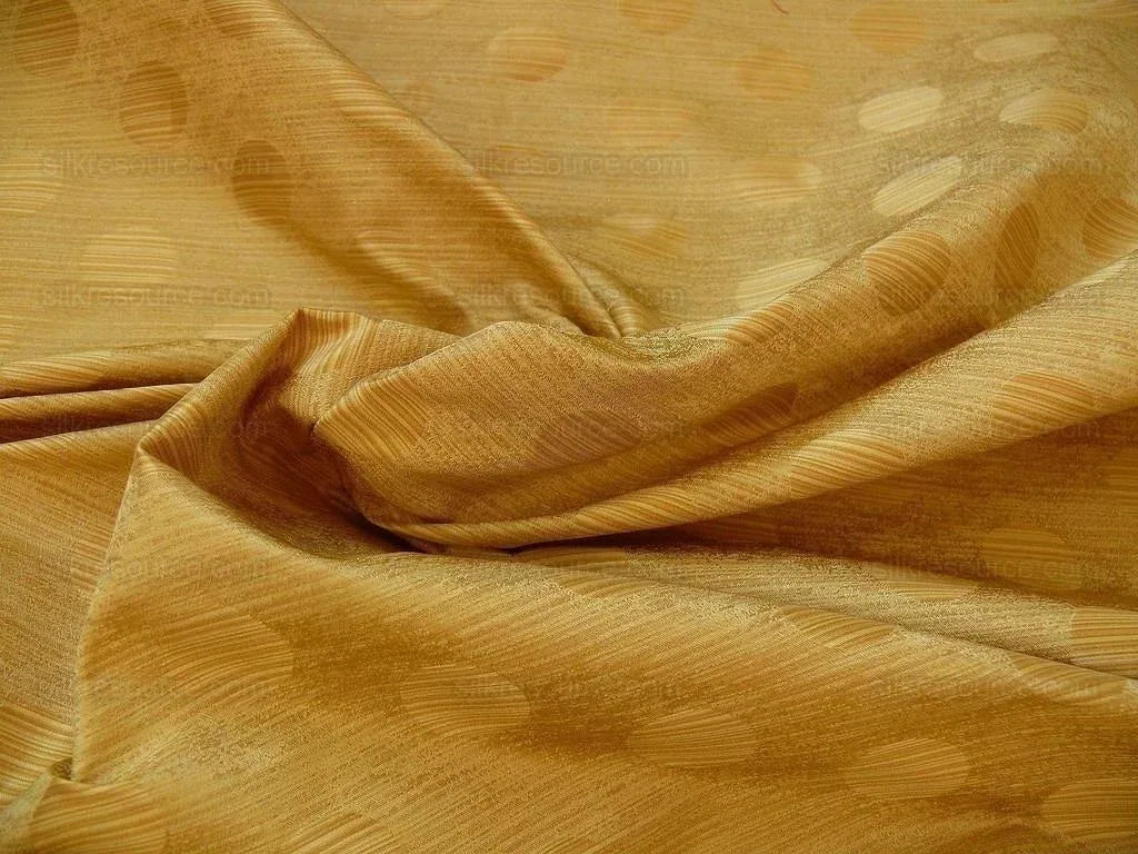 B. Berger Duralee 100% Silk Damask Polka Dot "sunkissed" Gold Yellow Reversible Strie and Satin Mid-Century MSRP USD 250/Y