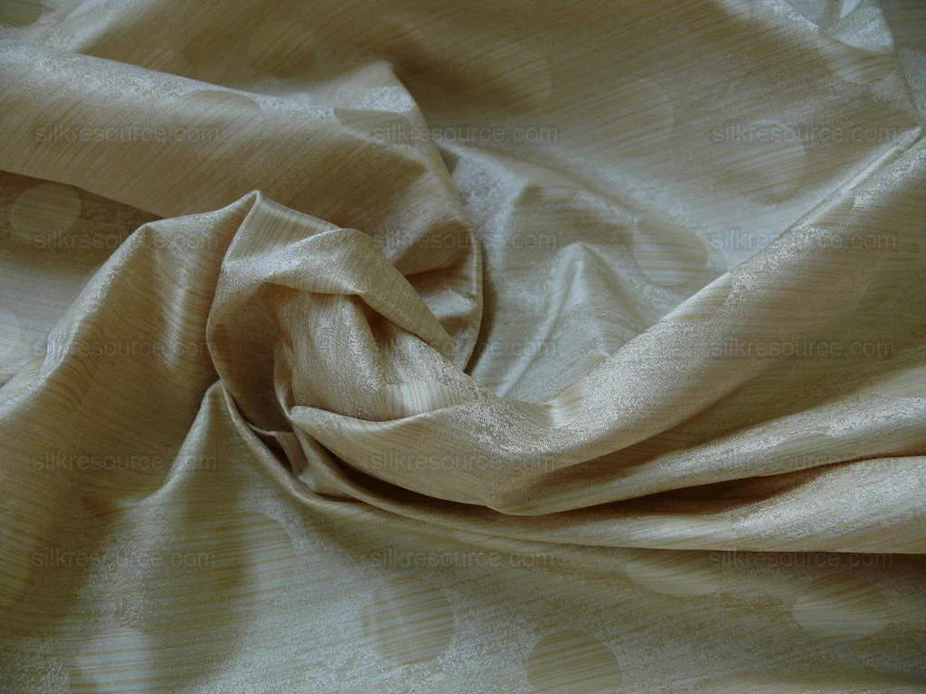 B. Berger Duralee 100% Silk Damask Polka Dot "white Gold" Ecru Reversible Strie and Satin Mid-Century MSRP USD 250/Y
