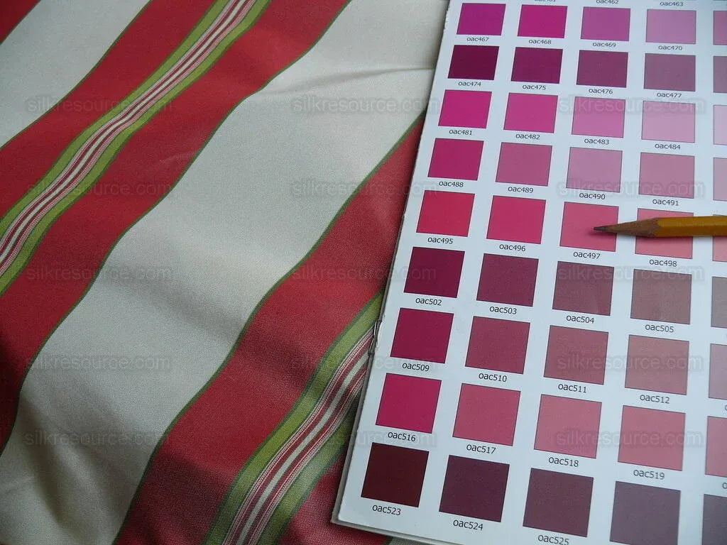 By yard Brunschwig and Fils 100% Silk Taffeta Stripe Hot Pink Green Cream Reversible MSRP USD 270/Y