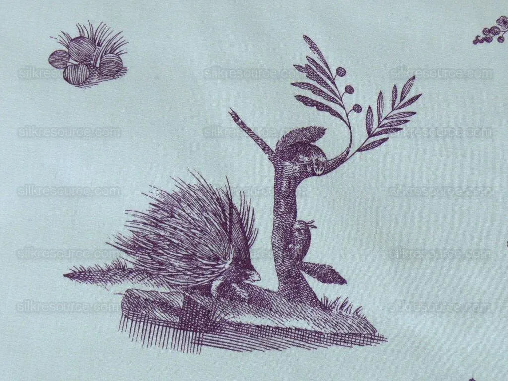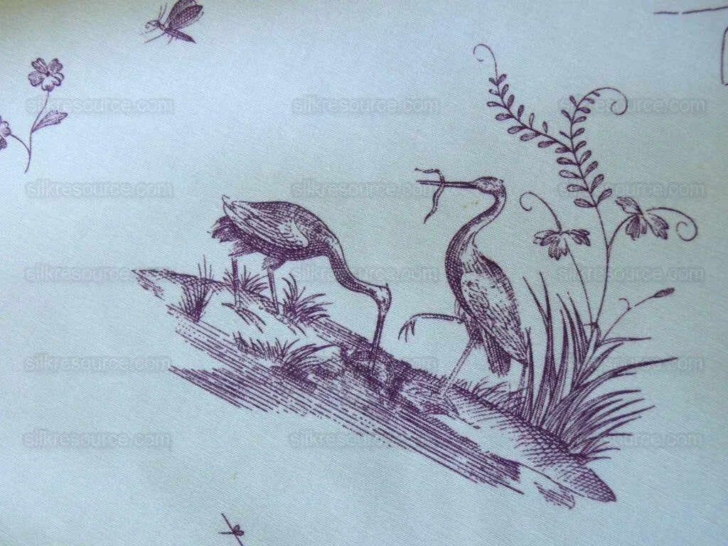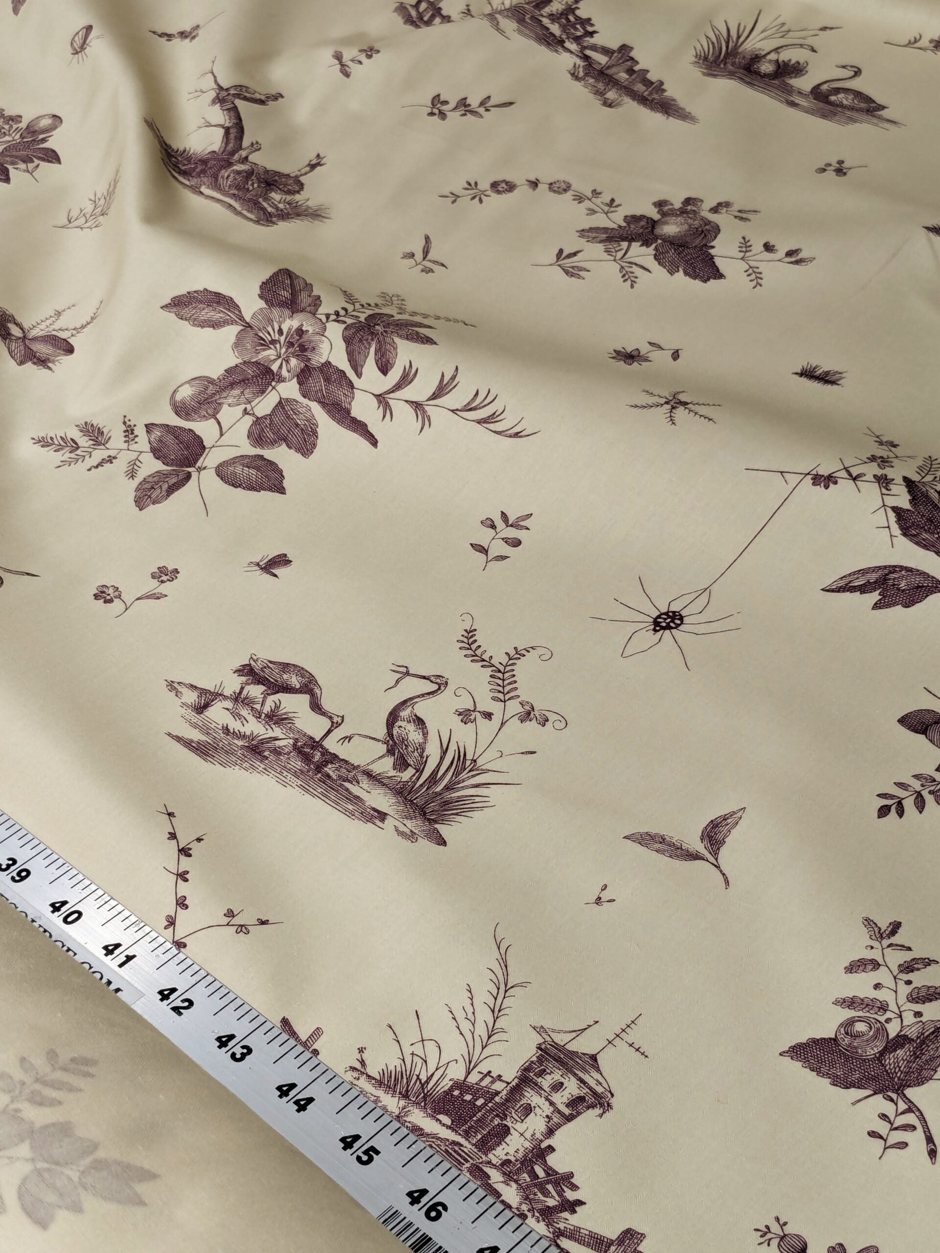 Brunschwig & Fils Chinoisere A L'americaine Toile Berry Plum Deep Purple White Cotton Bird Animal Spider from Mount Vernon Bty