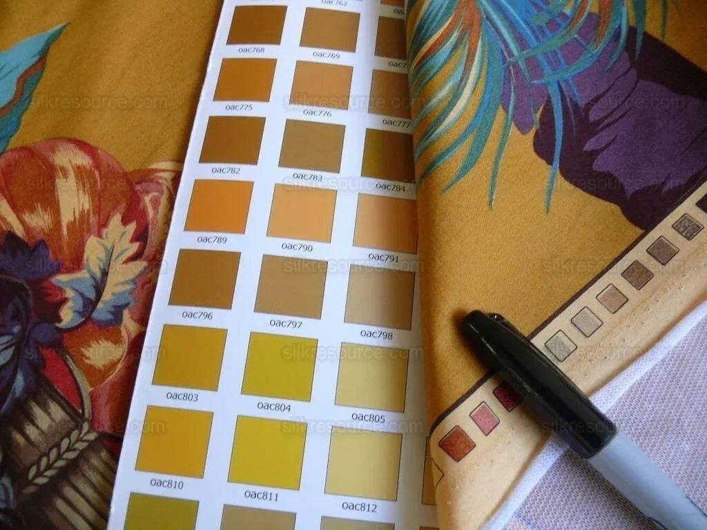 Prints in brilliant turquoise blue-green, brown, red & purple. (Please see Color Chart in photo)