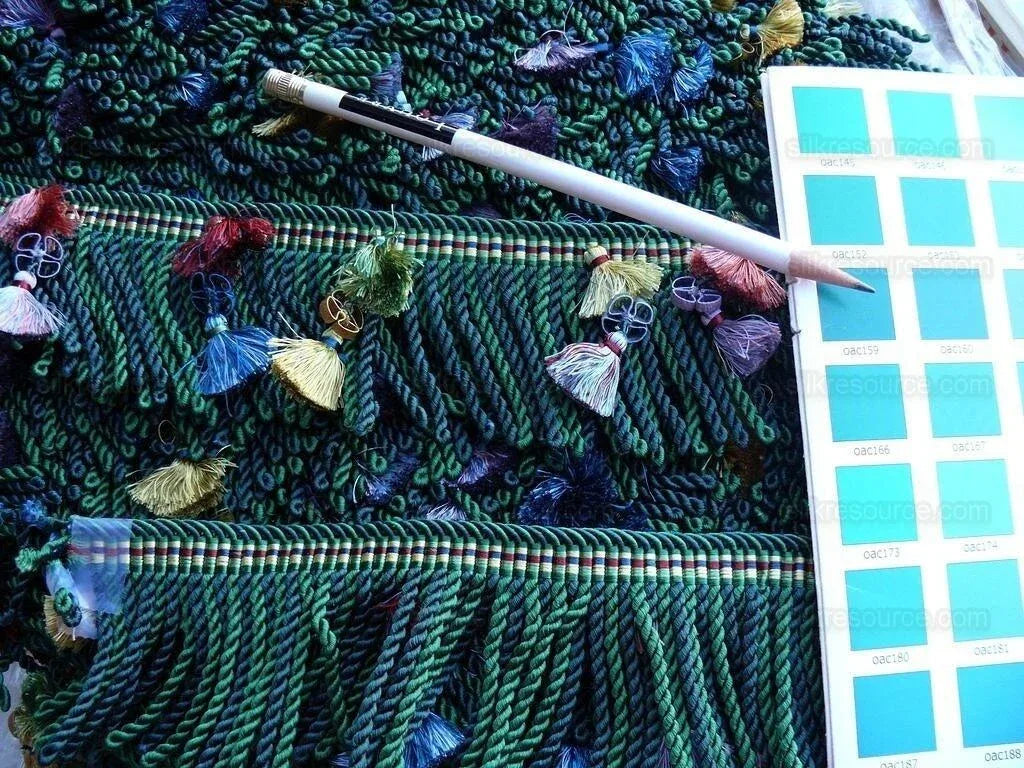 Decadent silk trims made by hand. It takes hours to produce one yard.