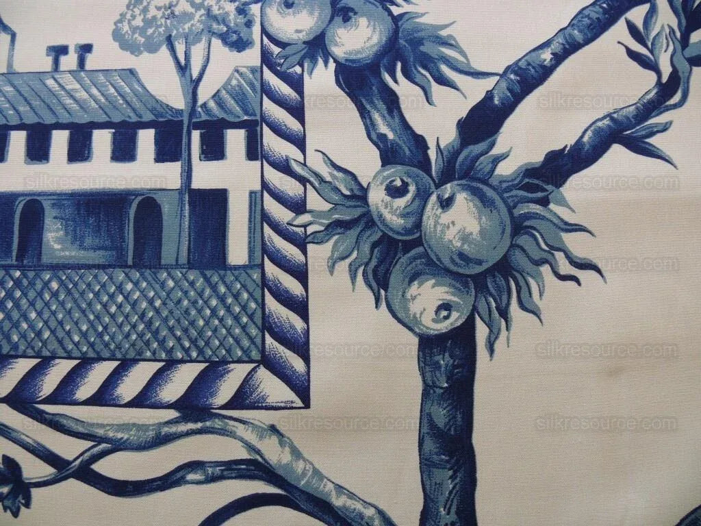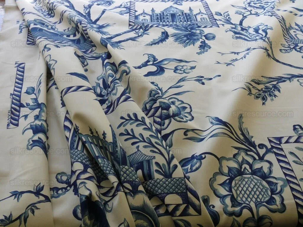 BY YD BEACON HILL PALACE WALK INDIGO BLUE WHITE COTTON TOILE ITALY Castle Tuscany MSRP USD200Y