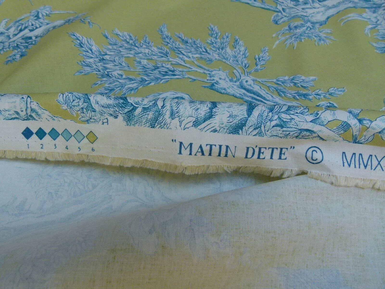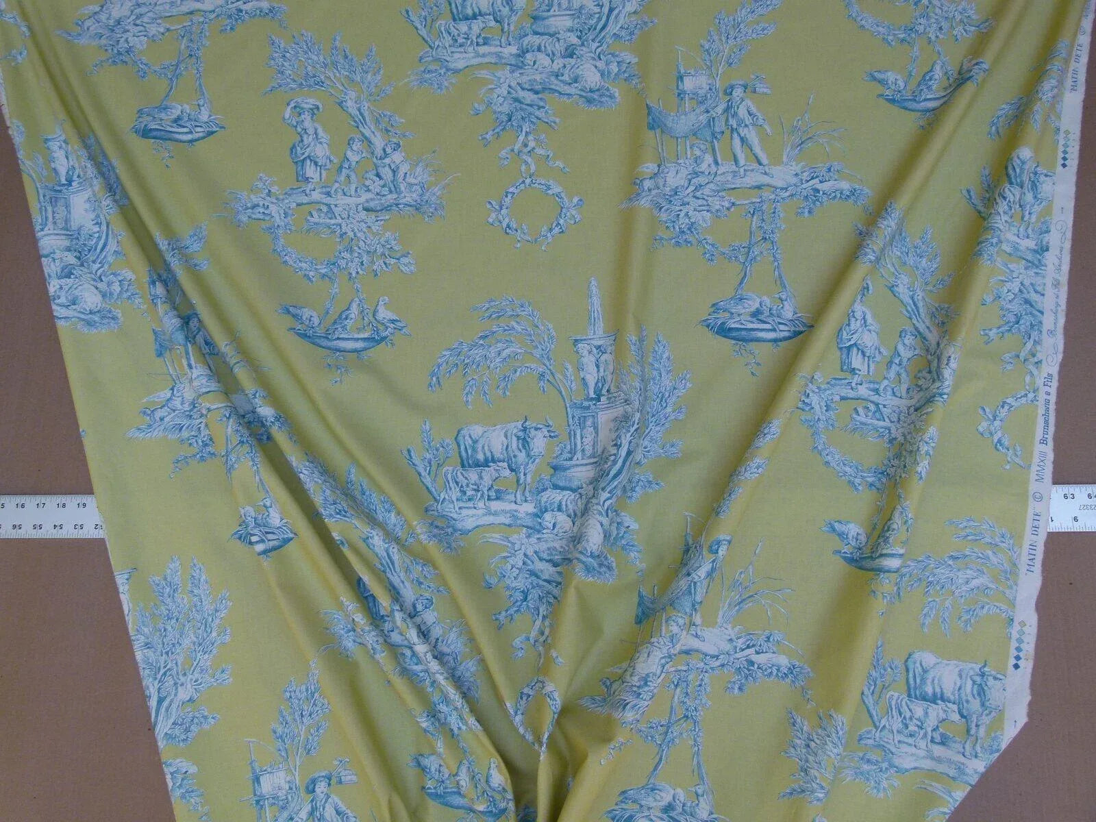 Bty Brunschwig & Fils Matin D'ete French Toile Country Bird Cow Summer Morning Lime Aqua Blue Yellow Cotton MSRP USD250/y