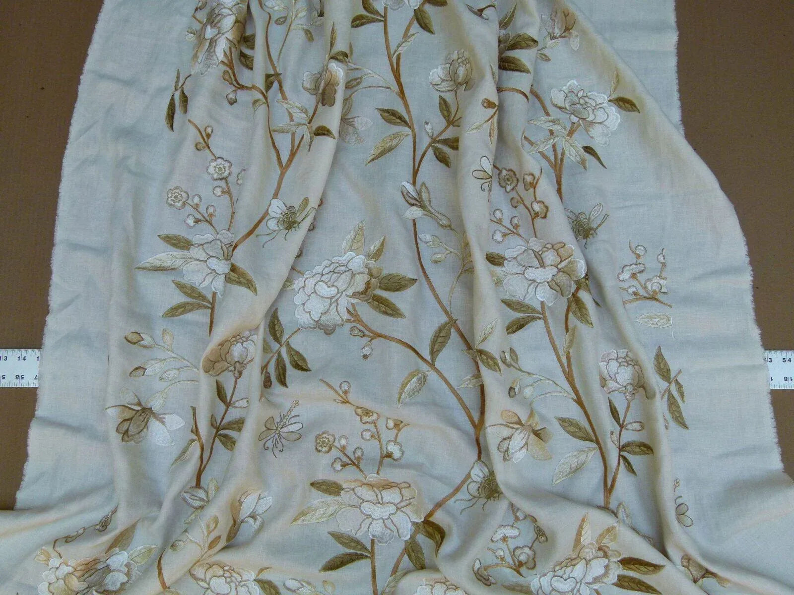 Bty Gp & J Baker Peony & Blossom Embroidery Linen Ivory Rp396y