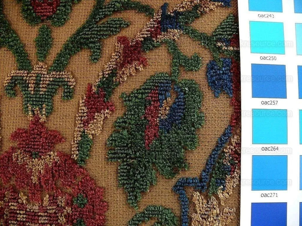 | Pattern Name | GLYCINE VELVET | Color Name | MULTI (background is golden-brown. Pattern in prime red, forest green, blue, gold) |