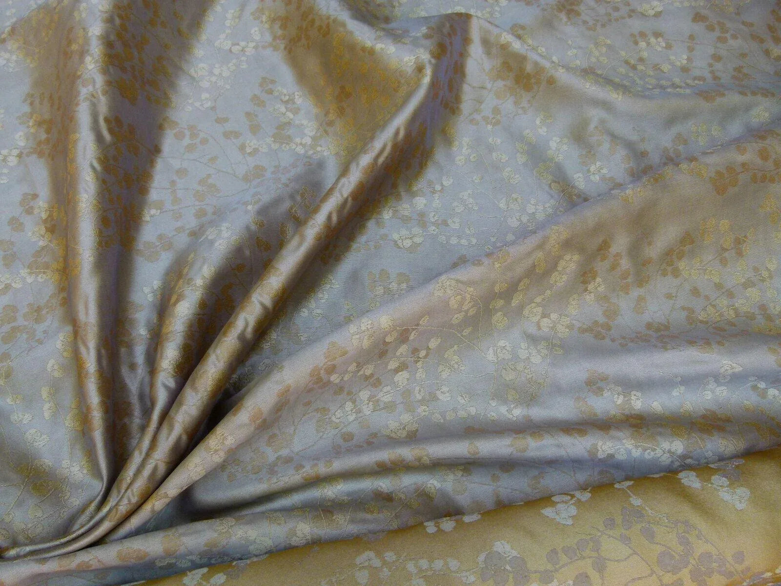 Reversible and textured, the silk captures light exquisitely. One side has more yellow gold while another side shows more bronze/golden beige.