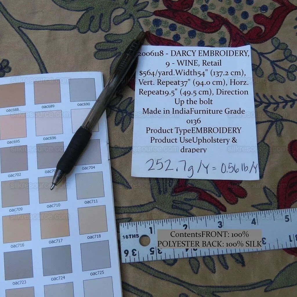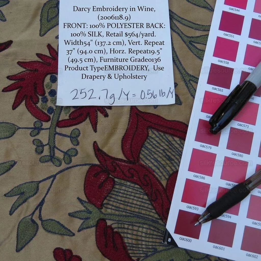 Bty Lee Jofa Darcy Embroidery Crewel Flower William Morris Wine