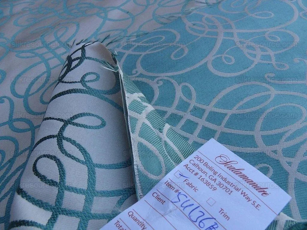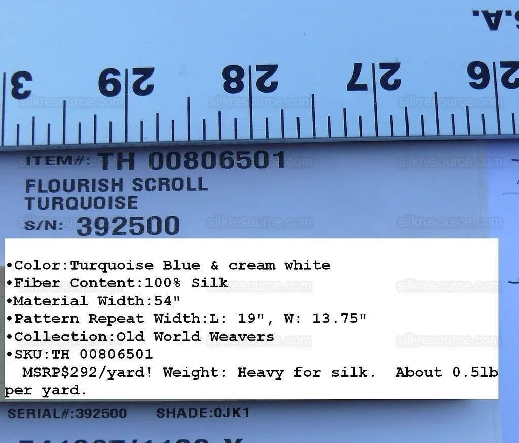 Bty Scalamandre 100% Silk Flourish Scroll Music Turquoise Blue MSRP USD 292/Y