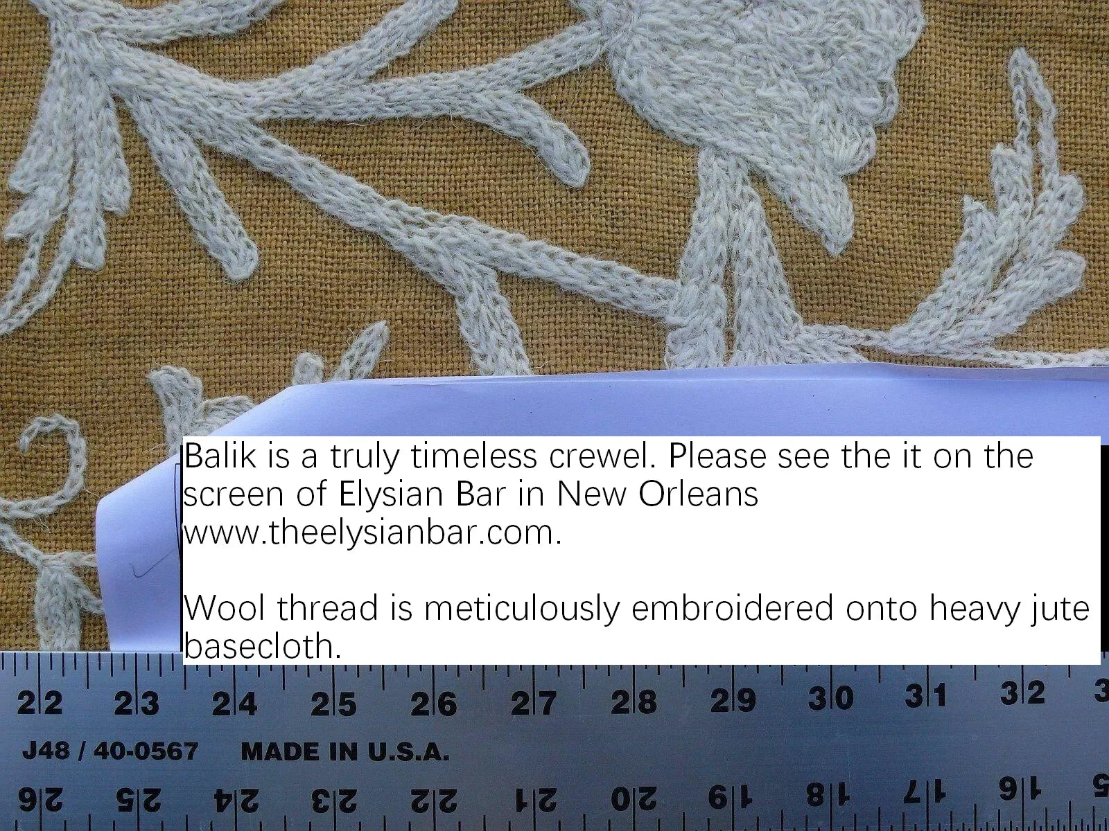 Balik is a truly timeless hand crewel. Please see the it on the screen of Elysian Bar in New Orleans www.theelysianbar.com.