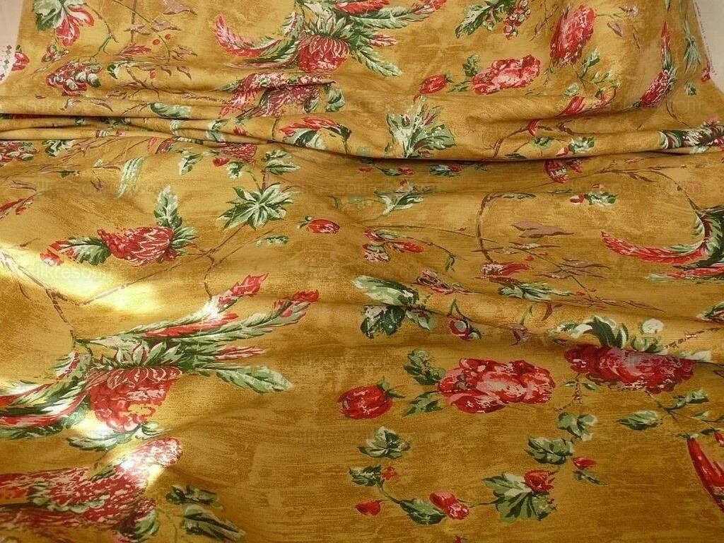 By Yard Scalamandre Dunraven Bird Of Paradise Hand Print Union Cloth Gold Mustard Pink Red Green MSRP USD 442/Y