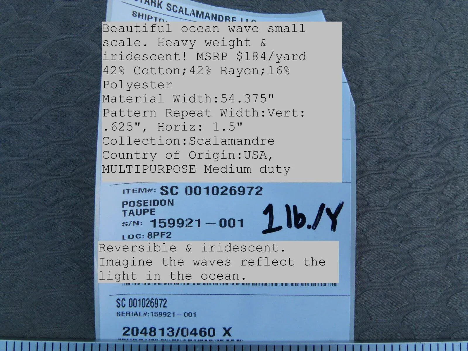 Beautiful ocean wave small scale. Heavy & iridescent! Reversible & iridescent. Imagine the waves reflect the light in the ocean. MSRP $184/yard a few years ago. Now similar quality goes for $250+/yard.