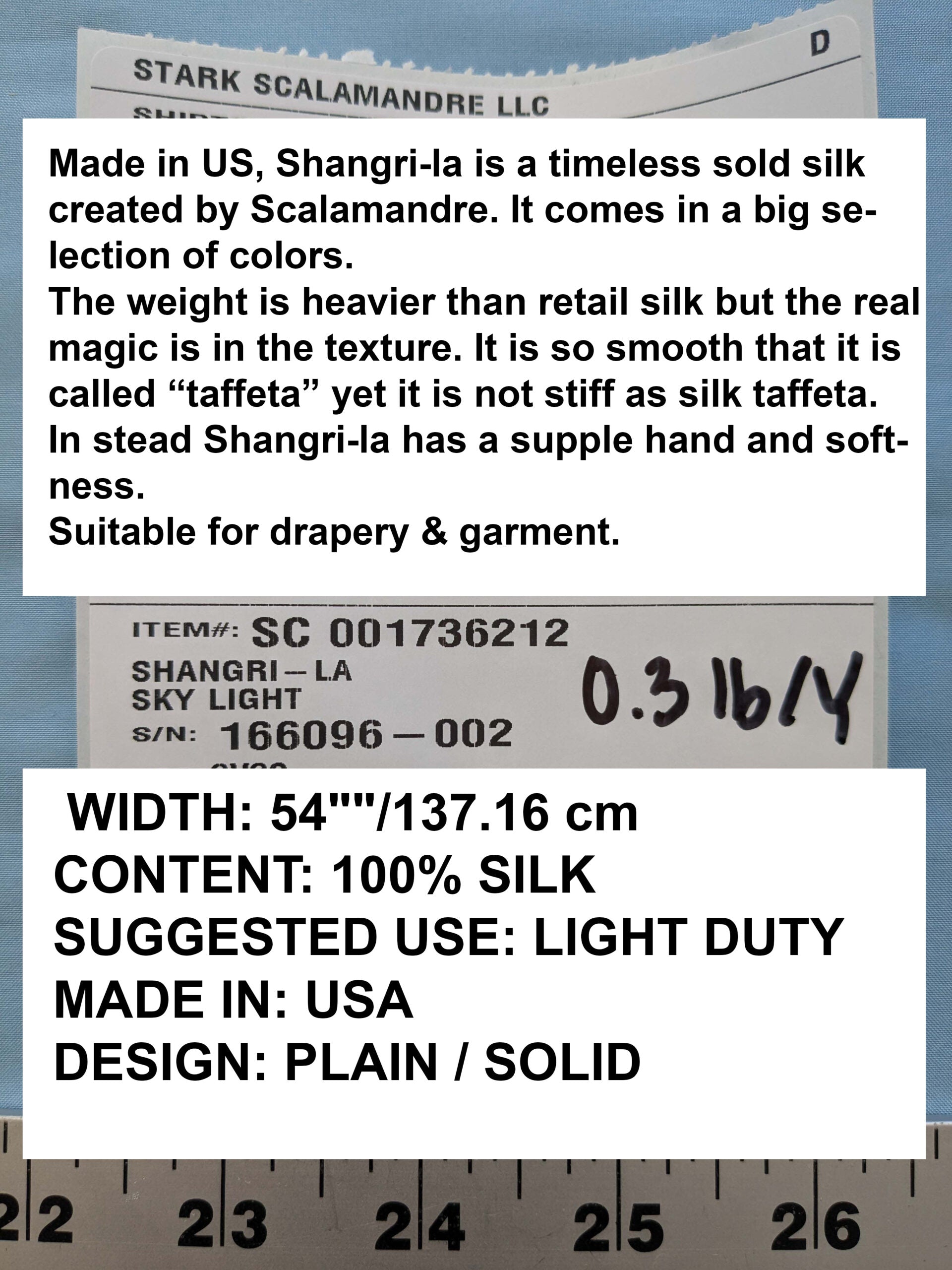 Made in US, Shangri-la is a timeless sold silk created by Scalamandre. It comes in a big selection of colors.