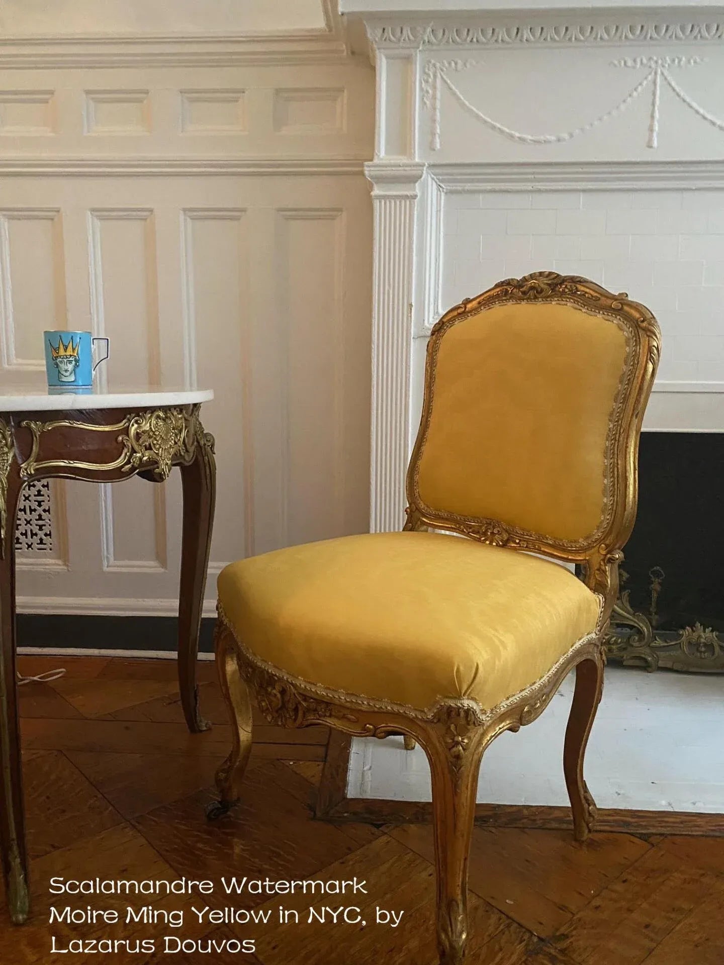 Last few photos are a formal French chair reupholstered in Watermark in Ming Yellow.