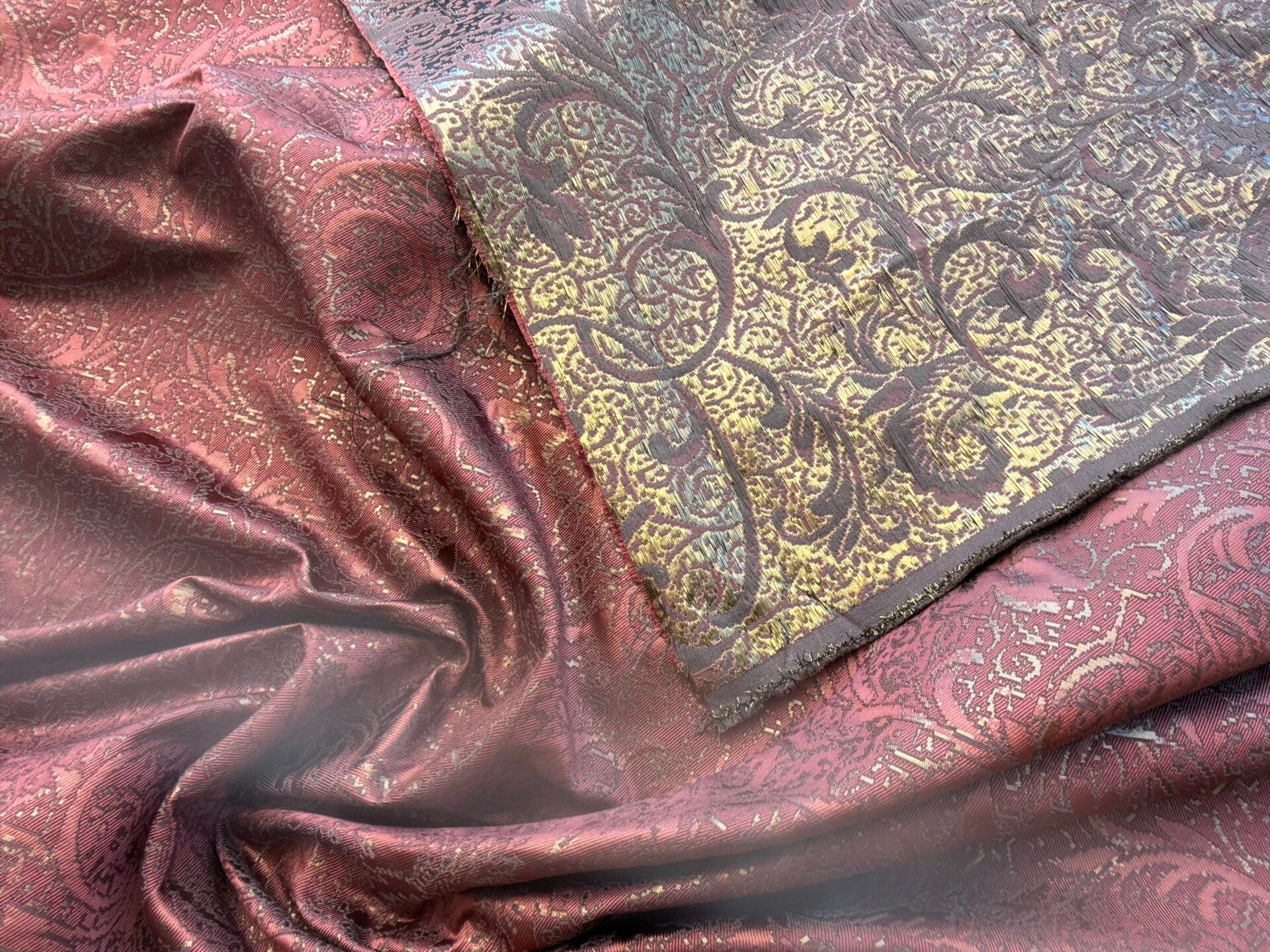 by yard Boboli Garden Silk Damask Italian Metallic Red Spice Rose MSRP USD 568/yard