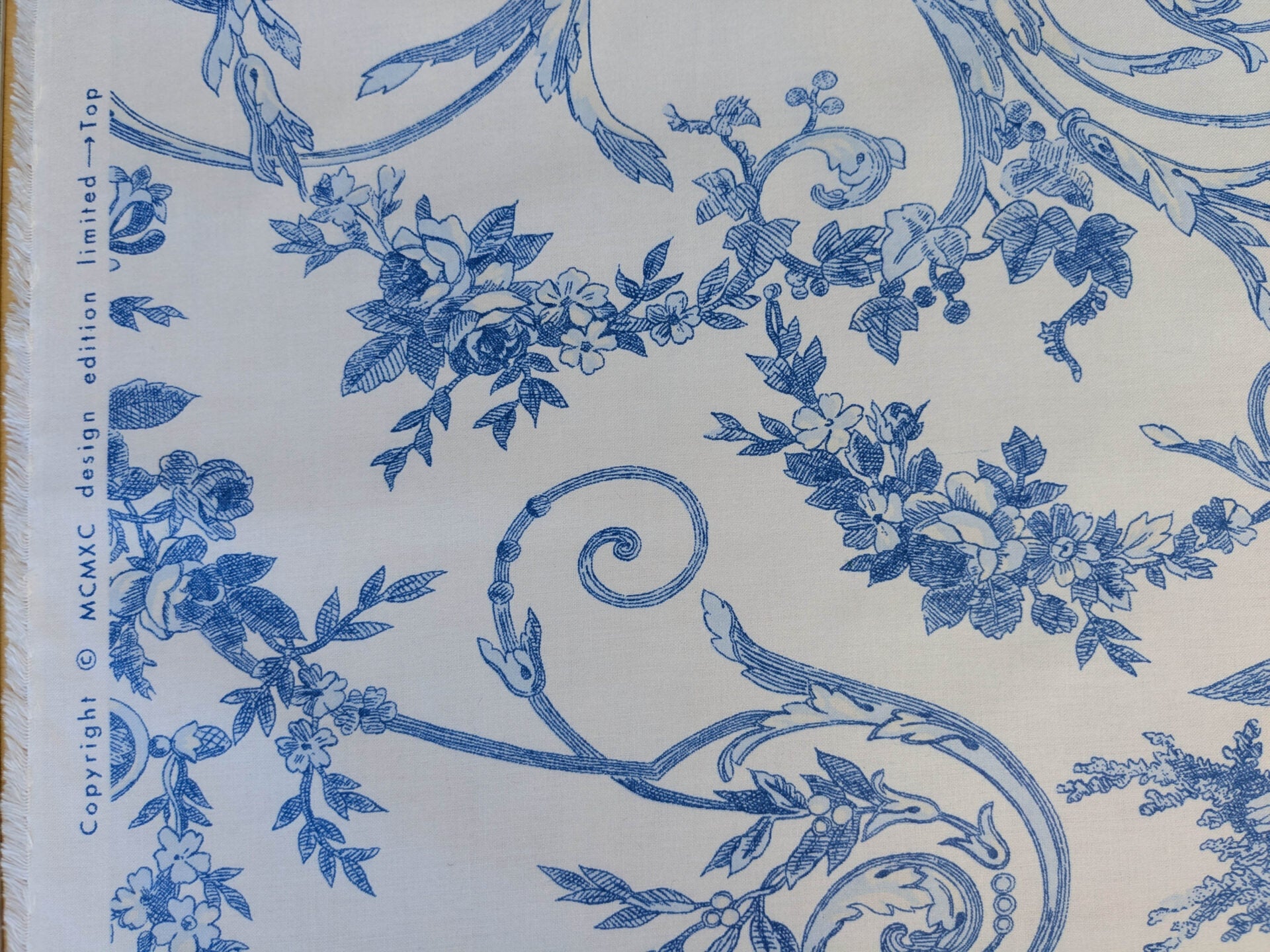 By yard Canvendish Hall Toile Print Historical Angel Cherubs Putti Dove Love Renaissance Toile de Jouy Blue on White
