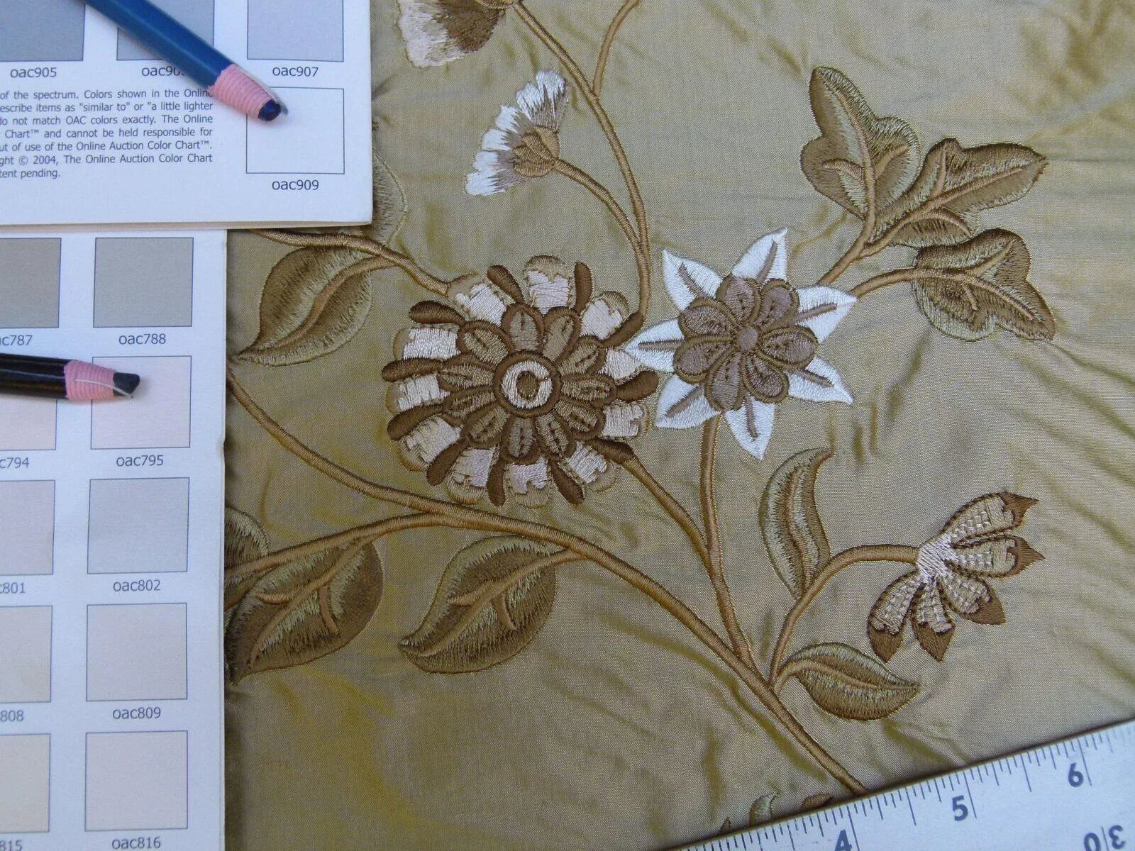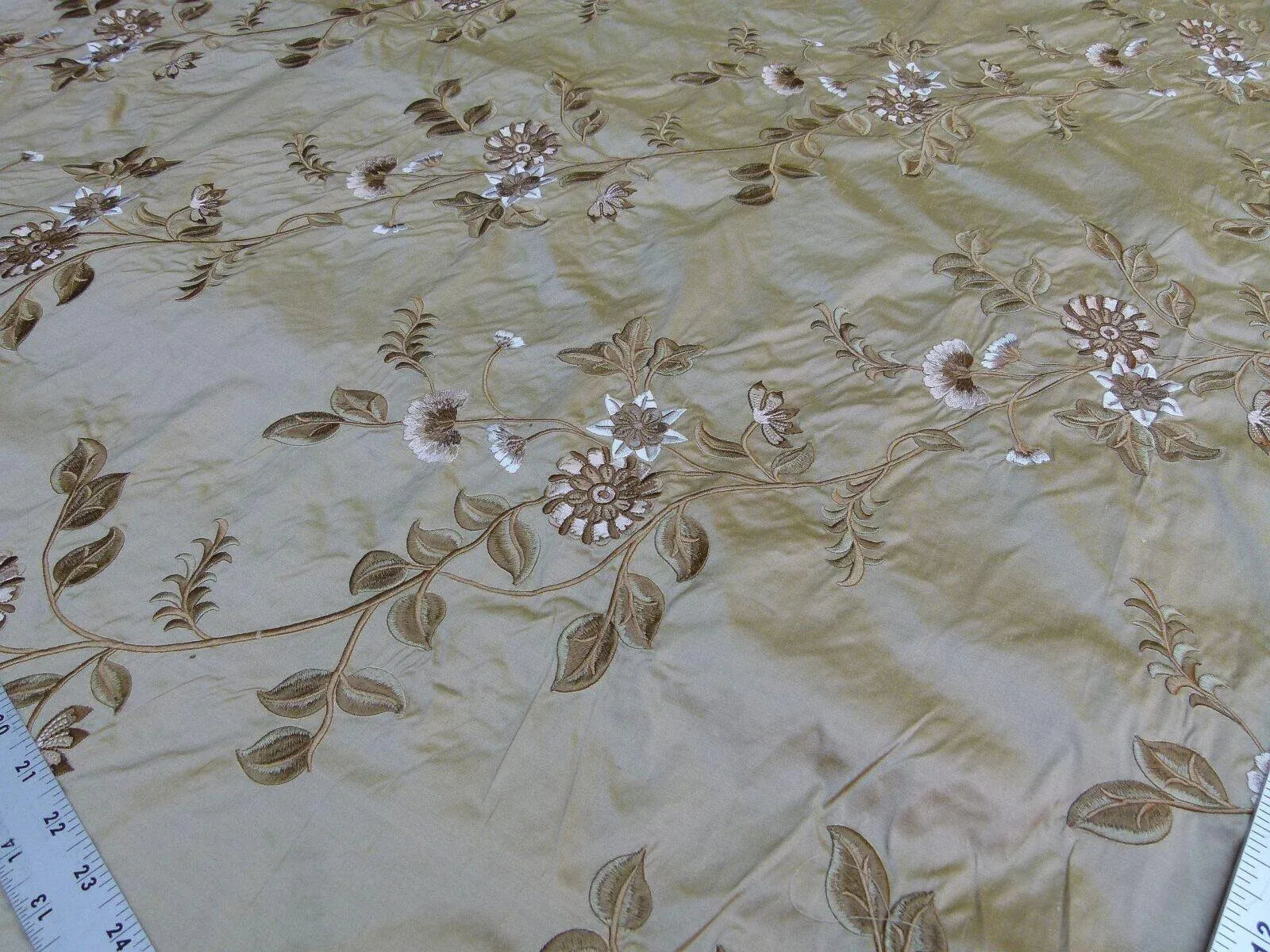 By Yard Gp&j Baker Menotti Bronze 100% Silk Embroidered Flora Vine Art Nouveau MSRP USD 268