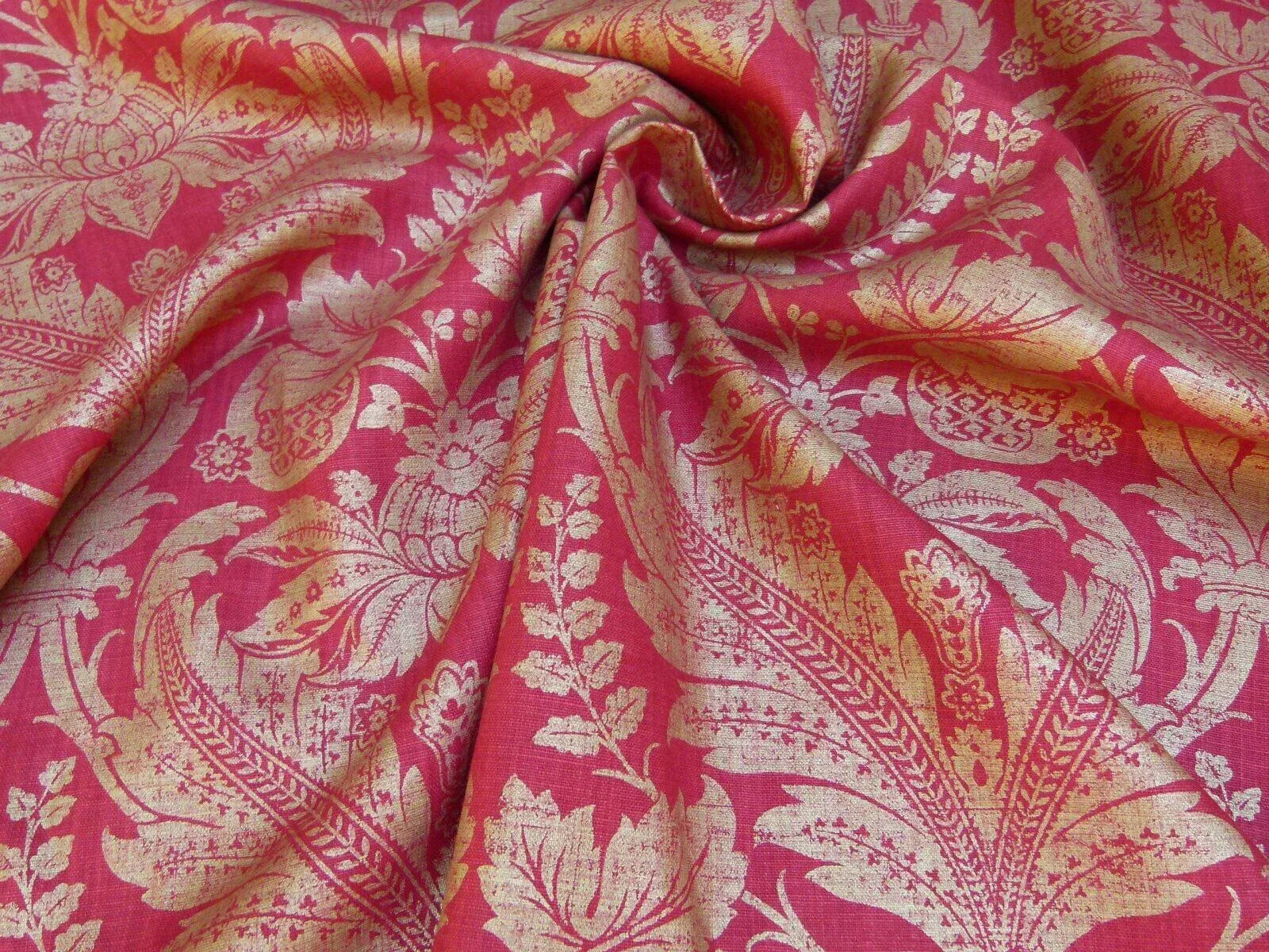 By Yard GP & J Baker Lee Jofa Venetian Damask Red Gold Linen Print Renaissance Pomegranate Rose MSRP USD 170