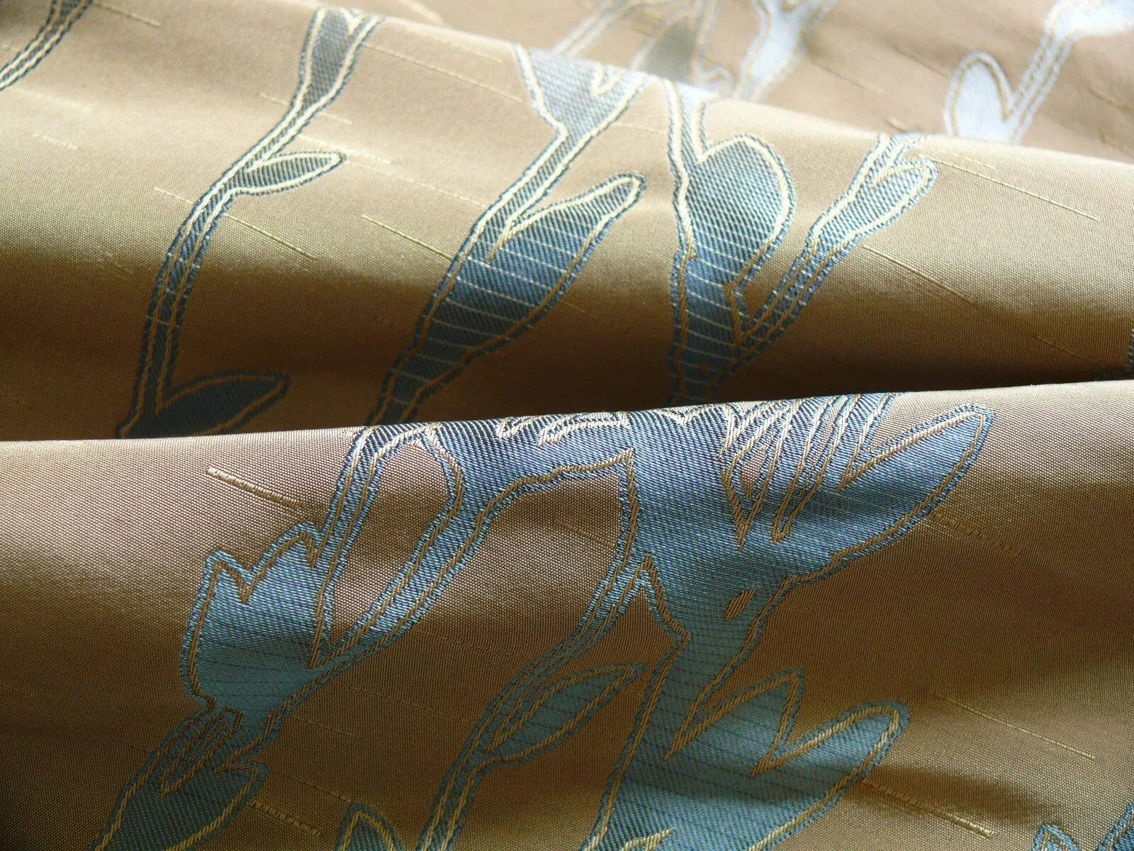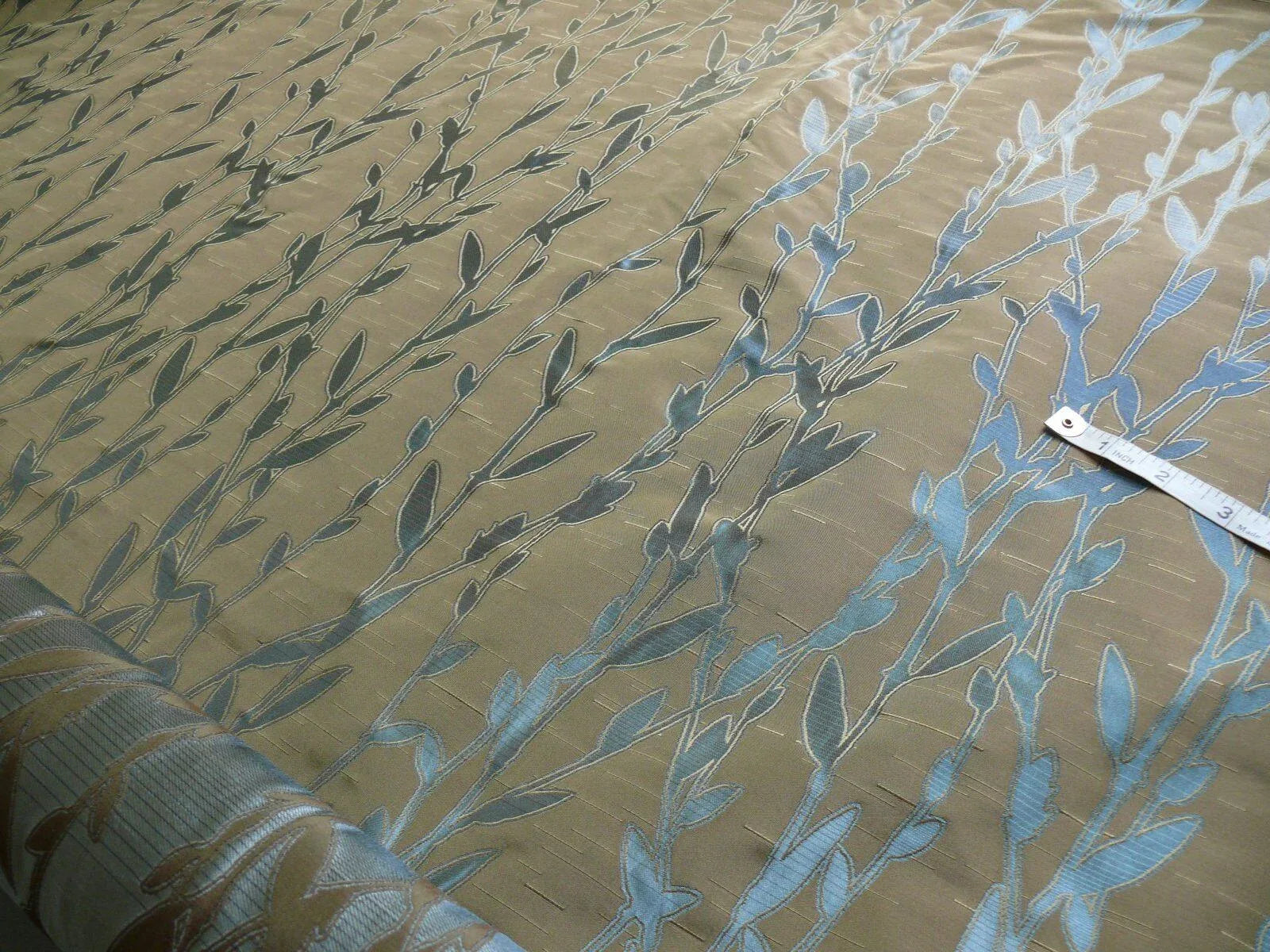 By Yard Heavy! 100%silk Lampas Pussy Willow Tree Wind Blue 676wind