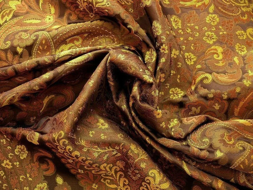 By Yard Hiend 100% Silk Lampas Cashmere Paisley "coffee" MSRP USD200+/yard