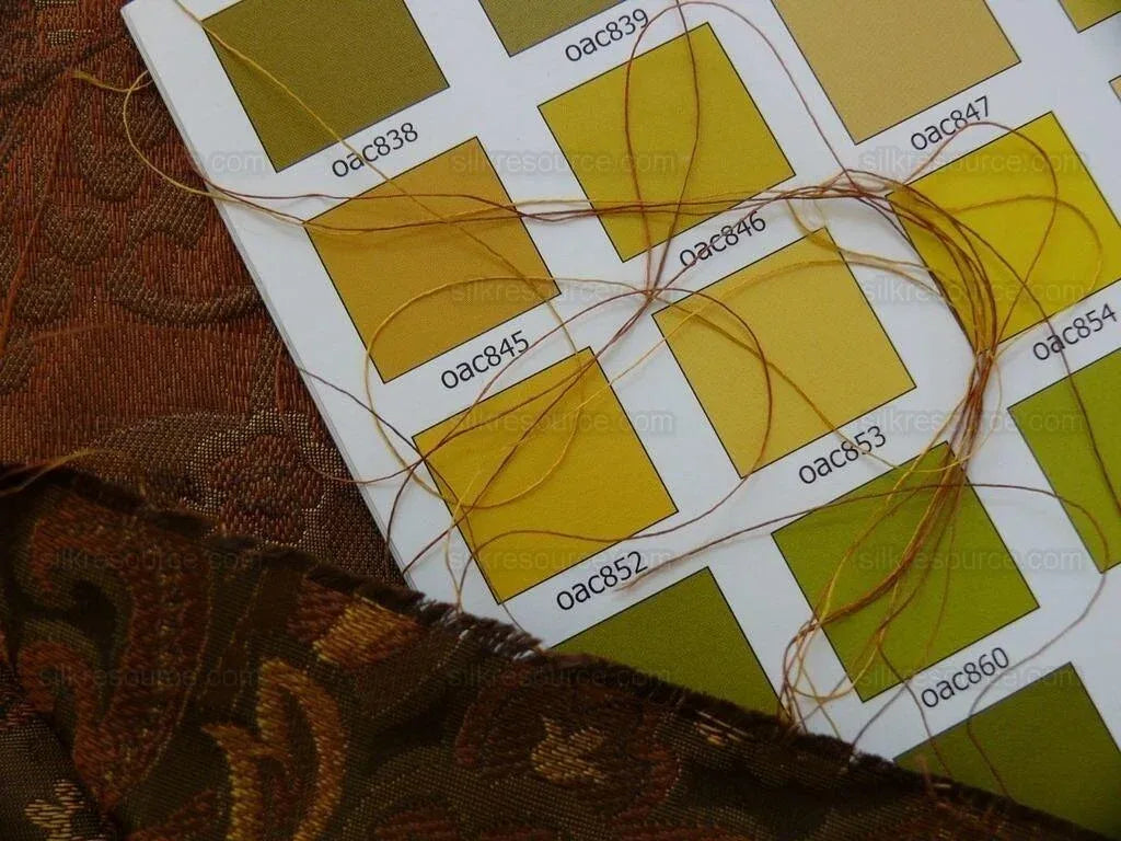 Photos don't do this paisley justice---because it's so detailed...& iridescent 100% silk lampas Highly intricate cashmere-style paisley. Color: "Coffee" Background: deep espresso brown; bright yellow gold;copper, gold. Photos a bit washed out. Please see Color Chart. Width: 54" V26.59", H13.77"Weight: heavy weight for silk. Exceptional construction & high threads count. Upholstery rated. Application: upholstery,drapery, garment (yes!), bedding. Such silk lampas retails anywhere $100-$300/yard & through designers only. Priced below wholesale. |