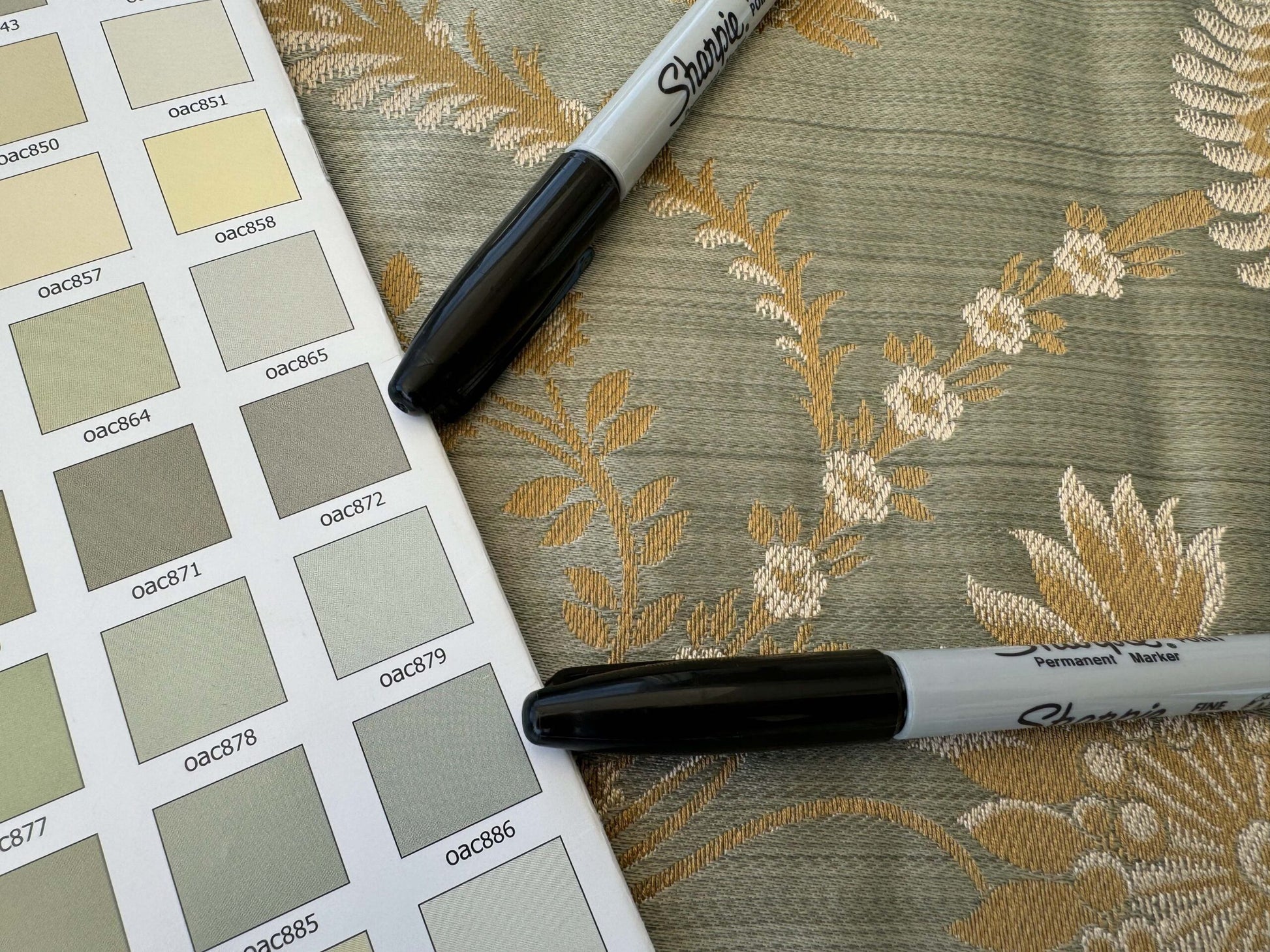 by yard Scalalamndre Sage Green Blue Neoclassical Brocade with Ornate Gold Teal Blue Floral