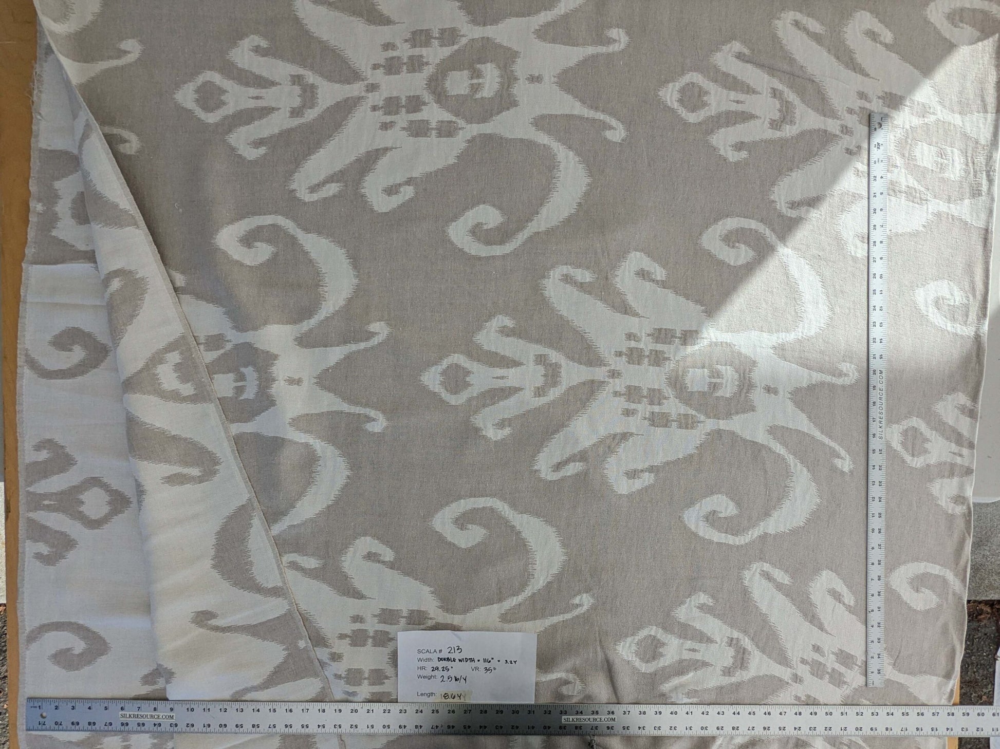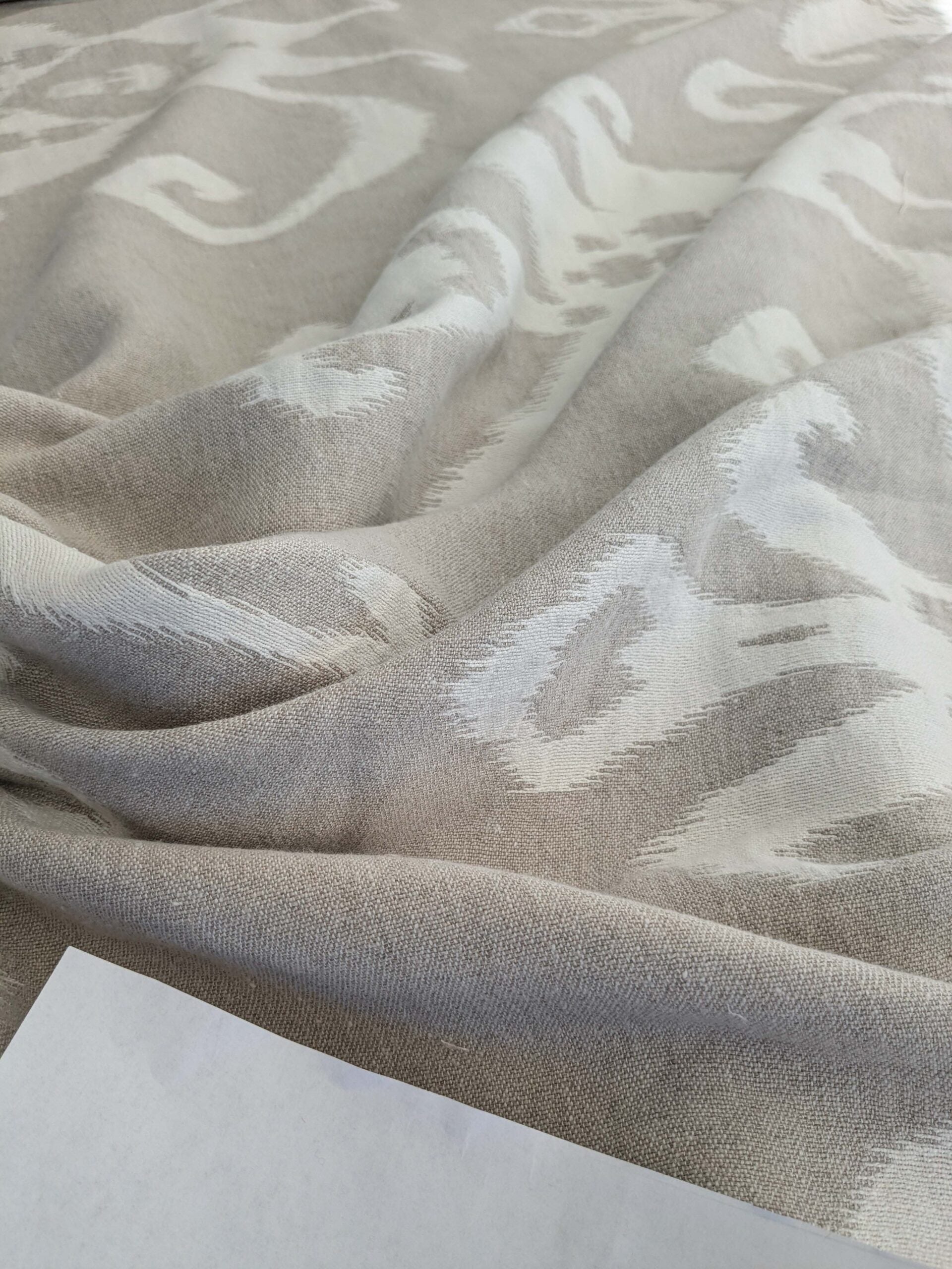 Inspired by Arabesque or Morocco deco, this ikat takes a huge repeat yet the fiber is soft, airy and sunny.