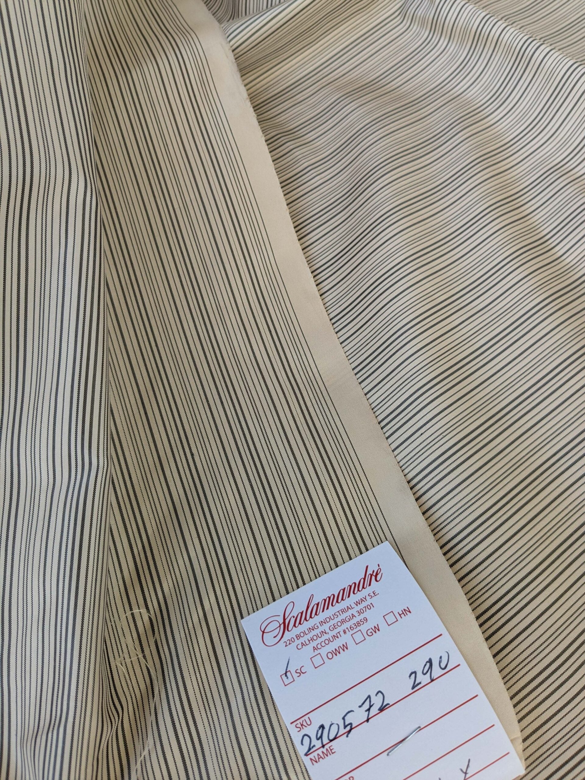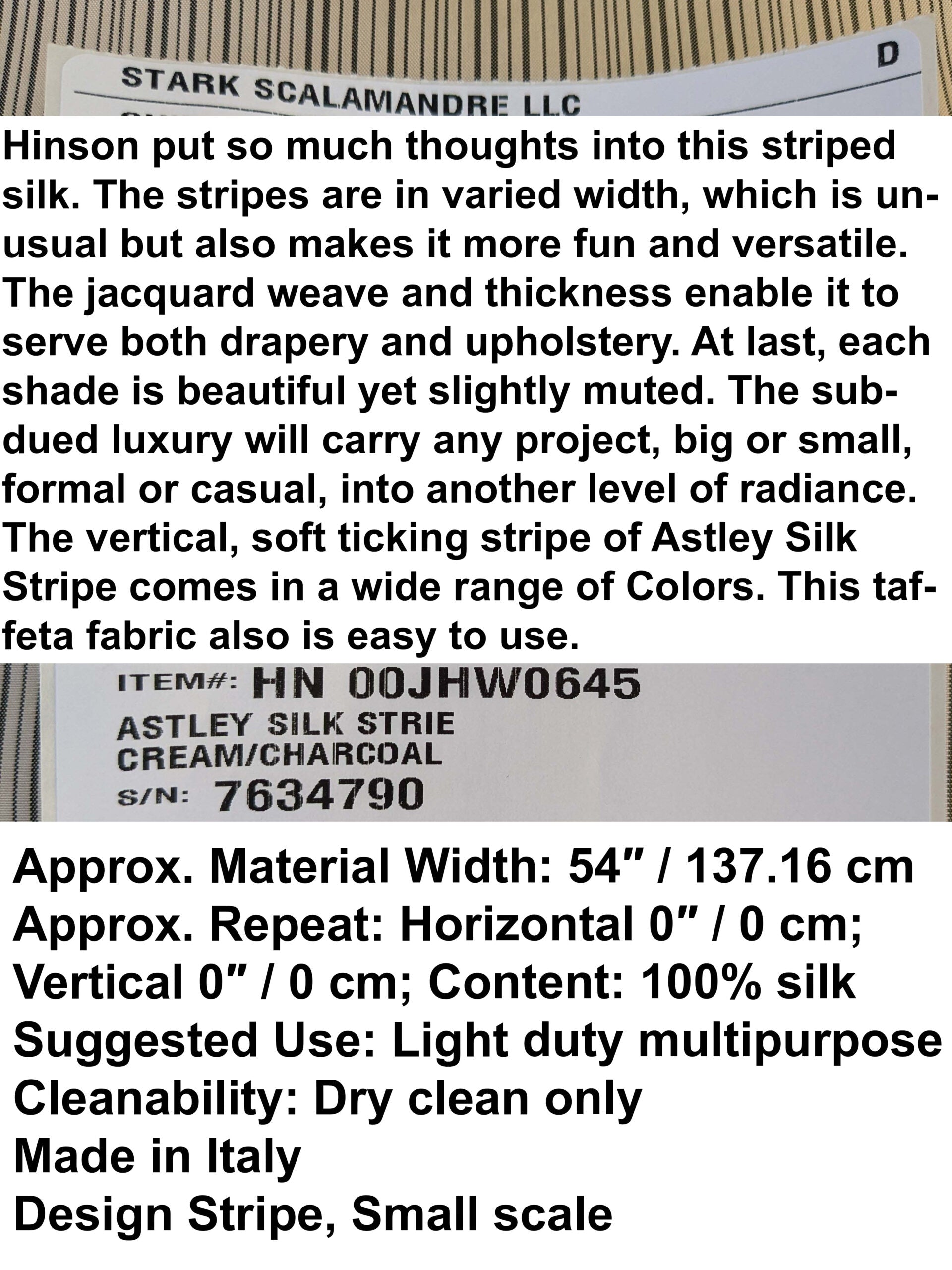 by yard Scalamandre Astley Silk Strie Cream Charcoal Beige Dark Gray White Pin Stripe Small Scale MSRP USD350+/yard