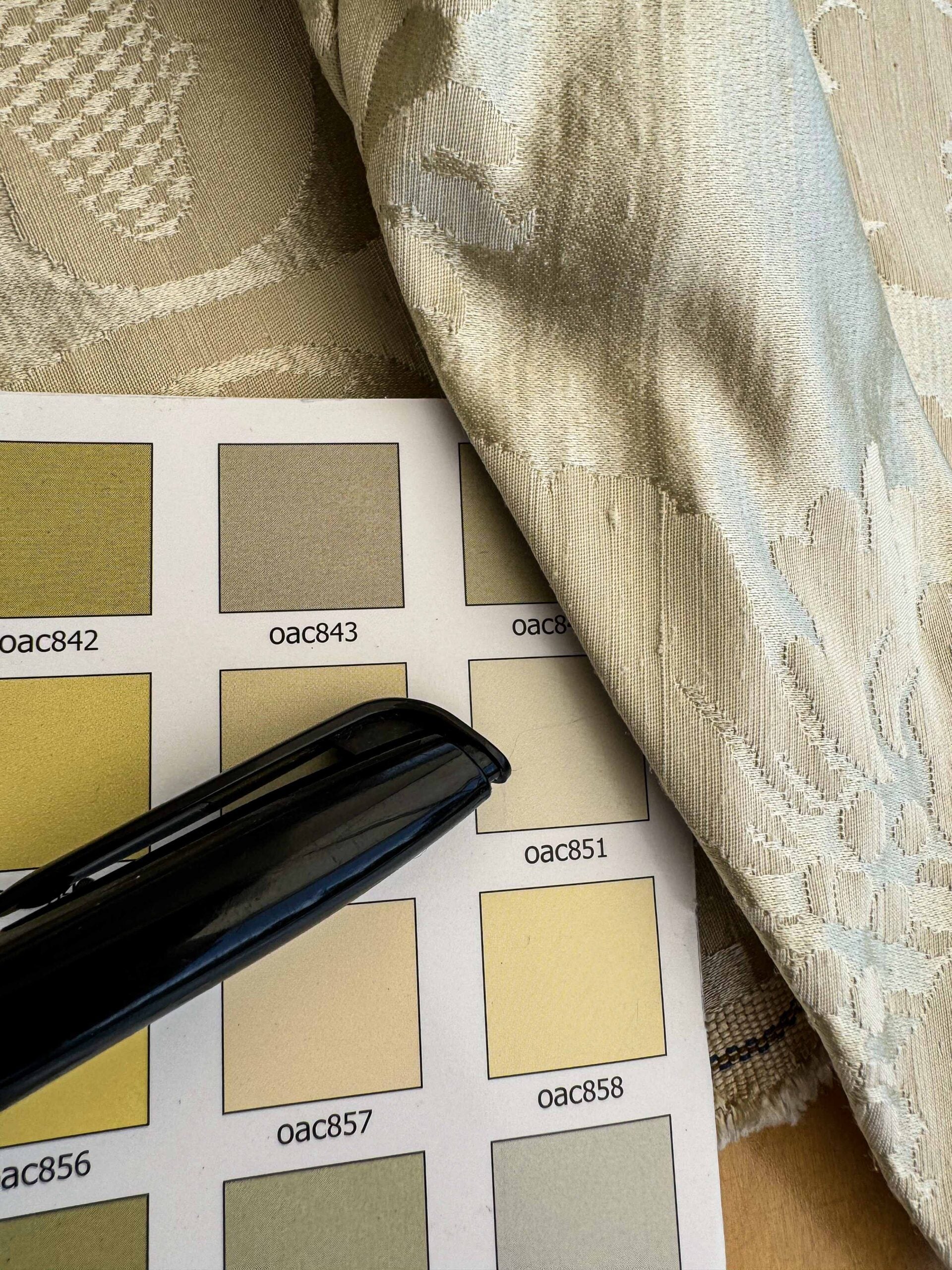 Weight: medium heavy weight silk damask. About 0.5lb/yard. Soft, yet durable enough for upholstery purpose