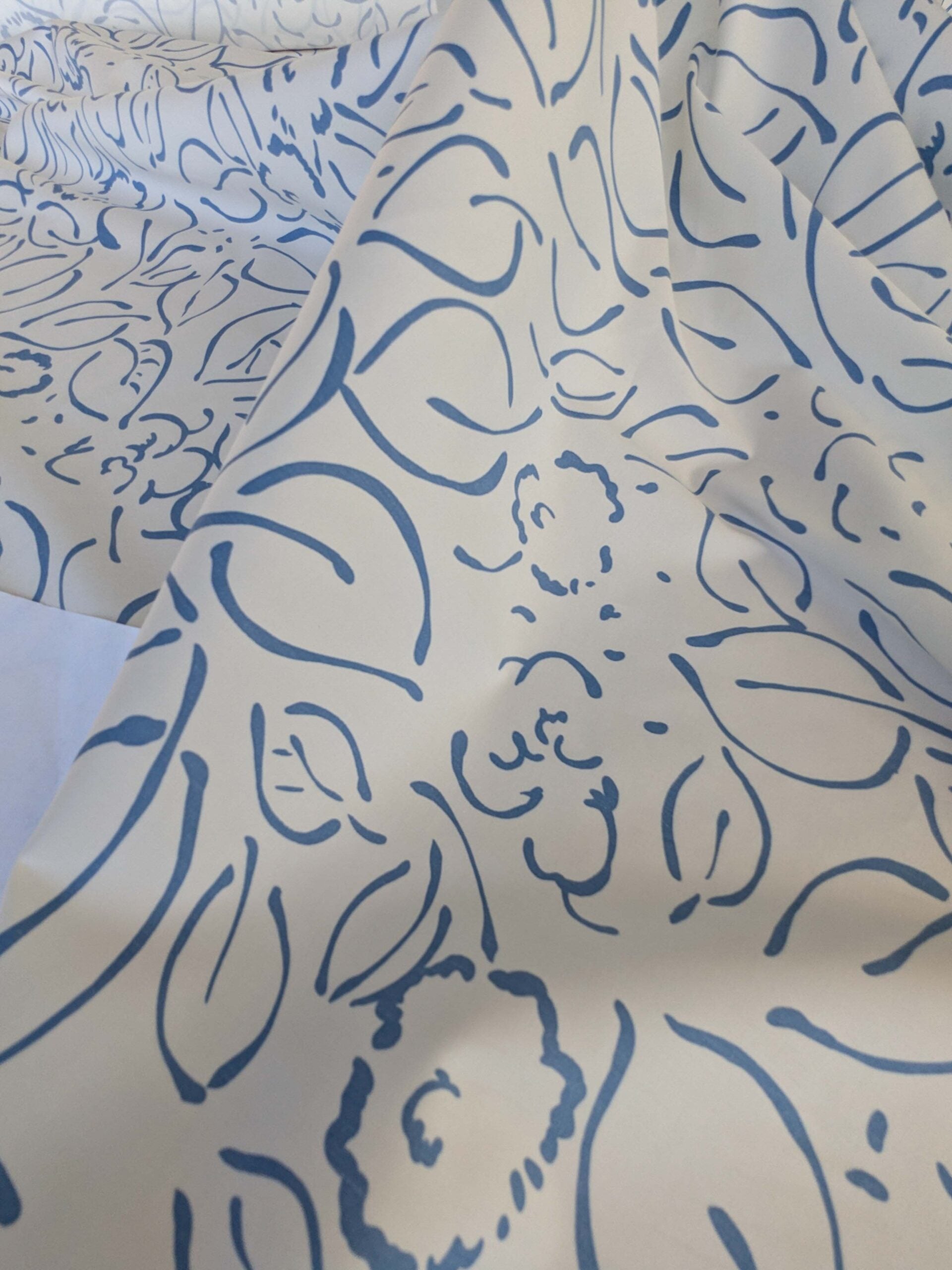 | DESIGN INSPIRATION The design of Brooks is an abstract gestural floral drawing. This hand screen printed textile is printed on 100% cotton, giving it a very clean look. |