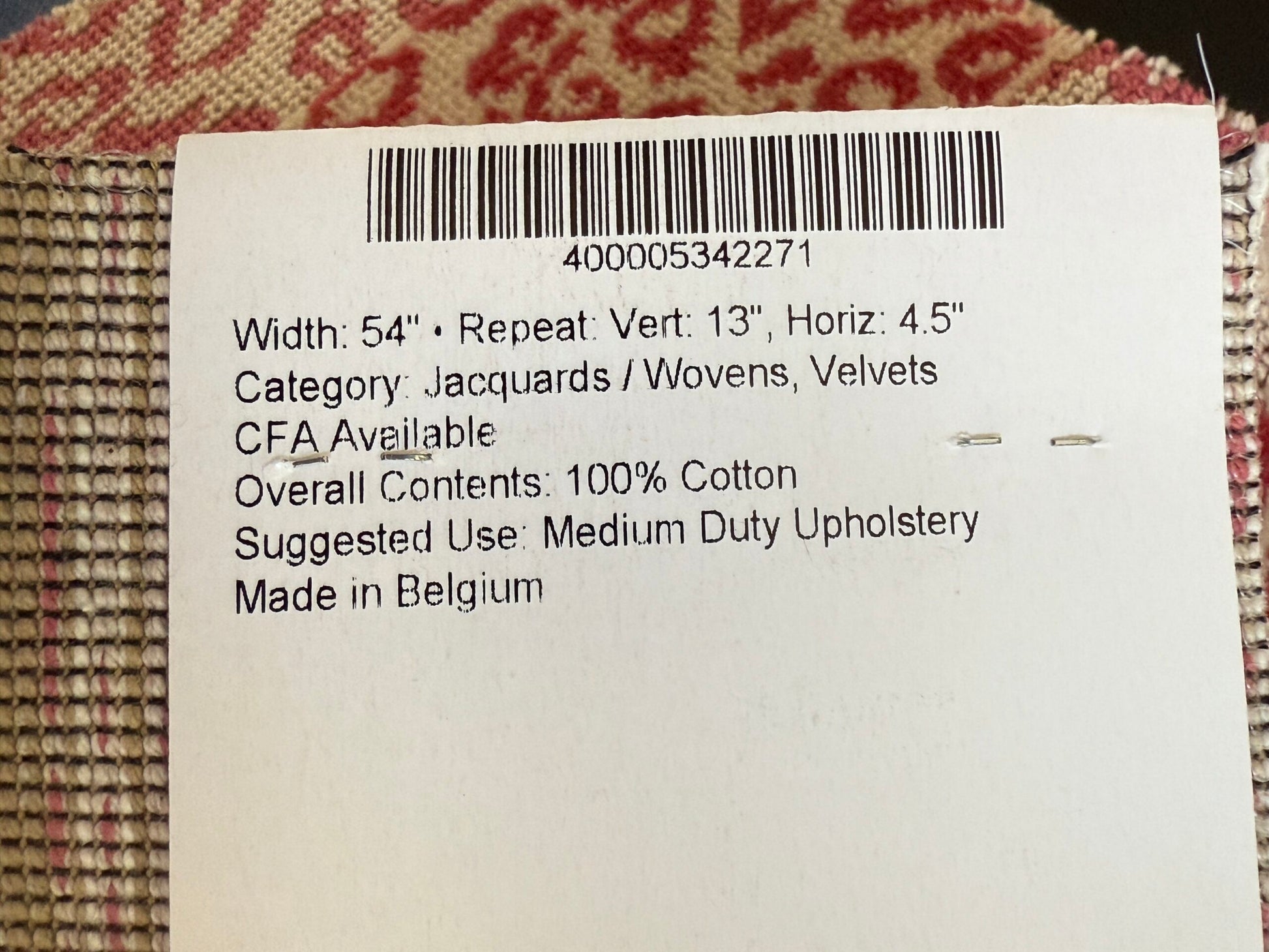 Color, repeat, fiber content, applications & retail price: please see the printout in photo.