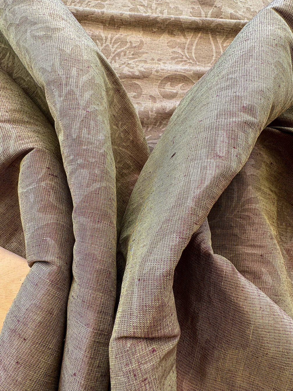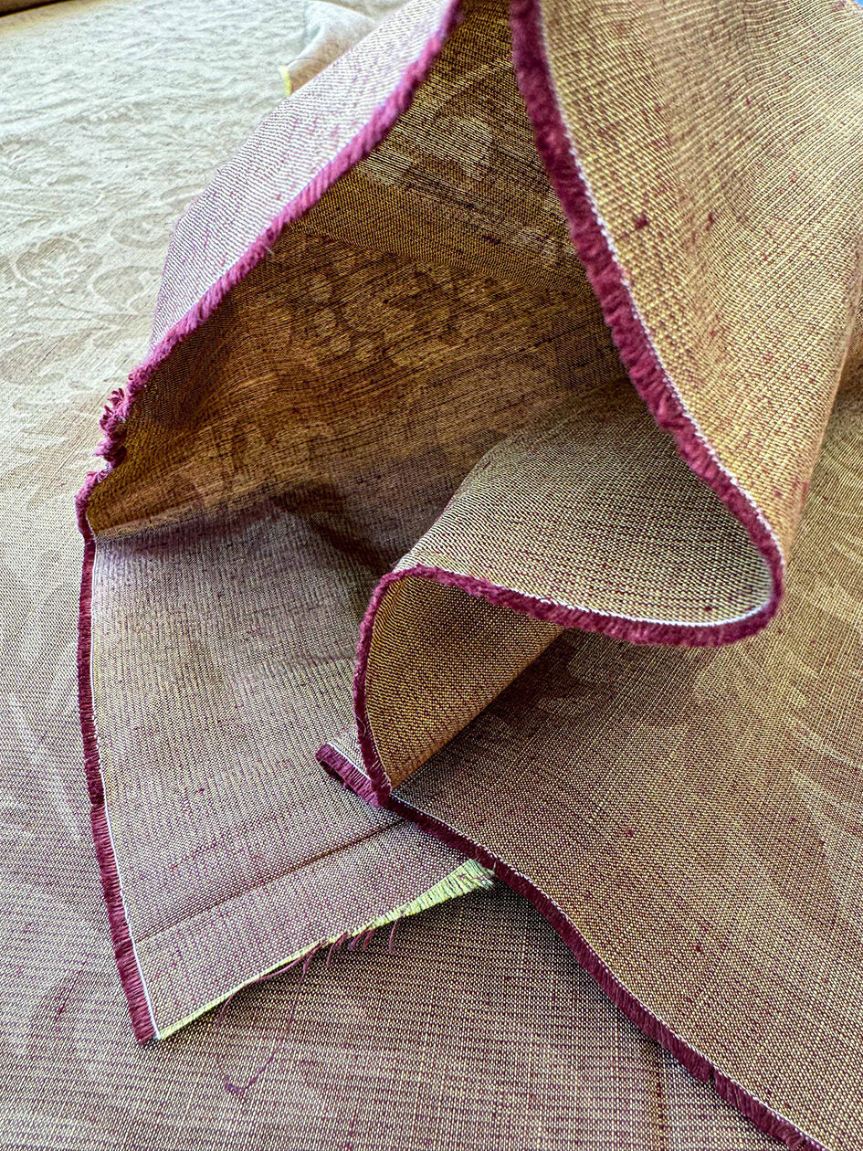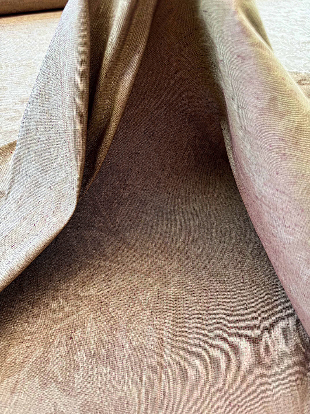 Weight: medium heavy weight silk damask. About 0.5lb/yard. Soft, yet durable enough for upholstery purpose